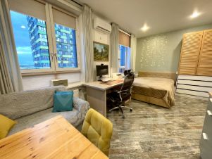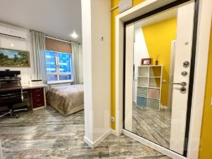 Эксклюзивная квартира для тех кто ценит комфорт и хочет жить в идеальной квартире по всем параметрам.Подарим парковочное место на платной стоянке у дома, на которой давно уже нет мест.Студия с двумя окнами и лучшей планировкой в ЖК Новый Зеленоград 25кв.м на удобном 4-ом этаже, в одном из лучших домов данного ЖК. Студия единственная в своем роде, не стандартная с одним окном а полноценная квартира в которой уютно, комфортно, много пространства и света.В квартире продумано все до мелочей и сделан дорогой качественный ремонт, постелен дорогой керамогранит lb ceramics, оборудована и укомплектована кухня, установлен питьевой фильтр обратного осмоса, установлена посудомоечная машина Bosch, индукционная плита, микроволновая печь, дизайнерский духовой шкаф albeni retro.Изготовленная на заказ велюровая кровать 160х200 с местом для хранения (подъемный механизм), двусторонним ортопедическим матрасом разного уровня жесткости.Удобная гардеробная зона с полками, большой с/у, и просторная кухня-гостиная с местом для рабочего стола и компьютера, раскладной диван, рулонные шторы по размерам на заказ со стороны кровати блэкаут, и со стороны кухни посветлее, Итальянские терморегуляторы на батареях отопления, кондиционер Haier работает как на тепло так и на холод.Шумоизоляция в данном доме очень хорошая, соседей не слышно совсем, также прямые соседи у вас будут только сверху и снизу, так как по бокам улица и стены подъезда, дом теплый, на первом этаже колясочная и место хранения для велосипедов и инвентаря, закрывается на ключ, а ключи только у собственников дома.Развита инфраструктура в ЖК есть все от сетевых магазинов до семейной медицинской клиники, сам жк оборудован видеокамерами по всему периметру, открытие домофона возможно по NFC, остановка общественного транспорта под домом.Один собственник, полная стоимость в договоре, свободная продажа, оперативный показ, юридически чиста, в квартире никто никогда не был прописан, успейте записаться.