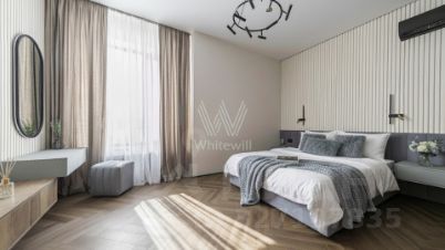 Готовый двухэтажный дом 252,7 кв.м. на участке 5,41 сотка в жилом охраняемом коттеджном посёлке ''Аносино Парк'' в элитном, экологически чистом районе подмосковья на Новой Риге.Продажа от застройщика БЕЗ ПОСРЕДНИКА. Любая льготная ипотека!Полная сумма в ДОГОВОРЕ, отсутствуют дополнительные сборы. Помощь в сборе документов и регистрация сделки входит в стоимость.Конструктив дома: ленточный фундамент, дом возведен из керамических блоков ''Паратерм'' 380мм, монолитные перекрытия и лестницы, внешняя отделка стен - облицовочный кирпич. Кровля металлическая бельгийский клик-фальц, дорогая дверь.Первый этаж 126 кв.м. (высота потолков 4 м) расположены: прихожая, гостевая спальня/кабинет, санузел, просторная кухня-гостиная (open space), бойлерная, гардероб.Второй этаж 126 кв.м. (высота потолков в коньке 6 м) расположены: 4 спальни и 3 санузла. Три мастер спальные комнаты со своими санузлами, одна спальня без санузла, большая ниша для шкафа (гардероб)Отделка: стены отштукатурены, теплый пол по всей площади первого этажа, установлены радиаторы, выполнена полусухая стяжка.Благоустройство: Участок огорожен забором из металлического евроштакетника высотой 2 м в единой стилистике коттеджного посёлка, выполнена входная группа с распашными воротами и калиткой, забетонирован подъезд от основного полотна дороги к воротам, построен гараж на два машино-места и мотоцикл.К дому уже подключены все коммуникации: электричество (30 кВт), магистральный газ (газовая котельная с котлом на 50 кВт), на участке имеется индивидуальная скважина глубиной 120 м. с кессоном, установлен ЛОС с ж-б колодцем. Участок огорожен забором из металлического евроштакетника высотой 2 м в единой стилистике коттеджного посёлка.О поселке:Охраняемая территория, два въезда через КПП,Гостевой паркинг,Торговые ряды с необходимым набором магазинов,Уличное освещение,Центральные коммуникации: газ и электричество (прямые договора), оплата по сельским тарифам,Интернет и телевидение провайдер Всем WiFi со скоростью 100-500 мбит,Асфальтированные дороги и тротуар на центральных улицах,Территорию поселка обслуживает УК, охрана, видеонаблюдение, чистка дорог зимой, стрижка газонов, уборка территории,Детские площадки для детей разных возрастов,Спортивные площадки, футбольная коробка, уличные тренажеры воркаут, настольный теннис, волейбольная площадка,Парковая зона для прогулок и отдыха.Поселок расположен в 24 км от МКАД по Новорижскому шоссе, в непосредственной близости расположена вся необходимая социальная инфраструктура (муниципальные поликлиники, детские сады, школы), в шаговой доступности находится гипермаркет ''Мираторг'', на расстоянии 5 минут езды на автомобиле расположены более 5 различных Гипермаркетов, зона свободной торговли Outlet Village, фермерский рынок. Огромный выбор детских и взрослых спортивных центров. Поселок расположен в 2 км от Трассы (Автодорога Балтия), в пешей доступности имеется остановка общественного транспорта маршрутных такси и автобусов, идущих до метро Строгино или Щукинская.