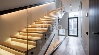 Лот: 9922701. ЭКСКЛЮЗИВ NF GROUP. Таунхаус с мебелью 345 кв.м на участке 2 cот. Кол-во спален: 5. Кол-во с/у: 6. Поселок ''Парк Фонте''. Новорижское шоссе, 23 км от МКАД. Без комиссии для покупателя.Просторный таунхаус с панорамным остеклением и эксплуатируемой крышей, расположенный в живописном поселке ЖК Park Fonte на Новорижском шоссе, всего в 23 км от МКАД. Дом оформлен по дизайн-проекту с использованием премиальных материалов и полностью меблирован.Таунхаус спроектирован с особым вниманием к удобству для жизни большой семьи. Просторная кухня-гостиная с островом, несколько полноценных спален, мастер-блок с собственной гардеробной и санузлом, игровые и детские комнаты, постирочная, сауна и выход на эксплуатируемую крышу — каждый уровень продуман так, чтобы обеспечить максимум комфорта и приватности.В таунхаусе установлена вся необходимая бытовая техника, включая кухонные приборы, стиральную машину и телевизоры в каждой комнате. Коммуникации центральные: электричество, газ, отопление, водоснабжение и канализация.На эксплуатируемой кровле размещена уличная мебель и озеленение, что превращает пространство в уютную зону отдыха на свежем воздухе. 1 этаж: прихожая, с/у, кухня-гостиная-столовая, тех.помещение,2 этаж: холл, 2 спальни, 2 с/у, игровая комната,3 этаж: спальня с с/у и гардеробной, 2 спальни, с/у,4 этаж: сауна, с/у, душ, выход на кровлю, на кровле стоит уличная мебель.Придомовая территория полностью благоустроена: уложен аккуратный газон, высажены вечнозеленые туи, создающие ощущение приватности, предусмотрена автоматическая система полива.Ландшафтное оформление выполнено в едином стиле с архитектурой дома, поддерживая атмосферу европейского пригородного комфорта.У дома предусмотрена собственная парковка на несколько автомобилей.Расположение. Коттеджный поселок Park Fonte расположен в Истринском районе Московской области, в 23 км от МКАД по Новорижскому шоссе. Инфраструктура и благоустройство. На территории клубного поселка Park Fonte имеется озеро, вокруг которого обустроена прогулочная зона, спортивные и детские площадки, зоны для отдыха. Комфортное передвижение по территории обеспечивают асфальтированные дороги и организованная система уличного освещения.В свободном доступе жителей — развитая инфраструктура близлежащих поселков Villagio Estate: Monteville, ''Покровский'', ''Риверсайд'', Futuro Park.В нескольких минутах езды — медицинские и образовательные учреждения, торгово-развлекательные центры, кафе и рестораны, парикмахерские. В пешей доступности — цепь чистых озер, образованных рекой Беляной.Ближайший населенный пункт — село Покровское.Безопасность. Периметр поселка обнесен капитальным ограждением, на въезде работает оборудованный контрольно-пропускной пункт со шлагбаумом, осуществляется круглосуточное патрулирование территории и видеонаблюдение по периметру. В домах возможна установка противопожарных и охранных сигнализаций.Архитектура. Таунхаусы строятся по кирпично-монолитной технологии в едином североевропейском стиле. Линейная геометрия фасадов подчеркнута чередованием камня и стекла, объемных и гладких фактур. Во внешней отделке используются натуральный камень, клинкерная плитка и имитирующие природные материалы шпонированные панели. Преобладают оранжевые и терракотовые тона.Таунхаусы Park Fonte имеют панорамное остекление и экс