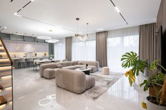 Лот: 9922701. ЭКСКЛЮЗИВ NF GROUP. Таунхаус с мебелью 345 кв.м на участке 2 cот. Кол-во спален: 5. Кол-во с/у: 6. Поселок ''Парк Фонте''. Новорижское шоссе, 23 км от МКАД. Без комиссии для покупателя.Просторный таунхаус с панорамным остеклением и эксплуатируемой крышей, расположенный в живописном поселке ЖК Park Fonte на Новорижском шоссе, всего в 23 км от МКАД. Дом оформлен по дизайн-проекту с использованием премиальных материалов и полностью меблирован.Таунхаус спроектирован с особым вниманием к удобству для жизни большой семьи. Просторная кухня-гостиная с островом, несколько полноценных спален, мастер-блок с собственной гардеробной и санузлом, игровые и детские комнаты, постирочная, сауна и выход на эксплуатируемую крышу — каждый уровень продуман так, чтобы обеспечить максимум комфорта и приватности.В таунхаусе установлена вся необходимая бытовая техника, включая кухонные приборы, стиральную машину и телевизоры в каждой комнате. Коммуникации центральные: электричество, газ, отопление, водоснабжение и канализация.На эксплуатируемой кровле размещена уличная мебель и озеленение, что превращает пространство в уютную зону отдыха на свежем воздухе. 1 этаж: прихожая, с/у, кухня-гостиная-столовая, тех.помещение,2 этаж: холл, 2 спальни, 2 с/у, игровая комната,3 этаж: спальня с с/у и гардеробной, 2 спальни, с/у,4 этаж: сауна, с/у, душ, выход на кровлю, на кровле стоит уличная мебель.Придомовая территория полностью благоустроена: уложен аккуратный газон, высажены вечнозеленые туи, создающие ощущение приватности, предусмотрена автоматическая система полива.Ландшафтное оформление выполнено в едином стиле с архитектурой дома, поддерживая атмосферу европейского пригородного комфорта.У дома предусмотрена собственная парковка на несколько автомобилей.Расположение. Коттеджный поселок Park Fonte расположен в Истринском районе Московской области, в 23 км от МКАД по Новорижскому шоссе. Инфраструктура и благоустройство. На территории клубного поселка Park Fonte имеется озеро, вокруг которого обустроена прогулочная зона, спортивные и детские площадки, зоны для отдыха. Комфортное передвижение по территории обеспечивают асфальтированные дороги и организованная система уличного освещения.В свободном доступе жителей — развитая инфраструктура близлежащих поселков Villagio Estate: Monteville, ''Покровский'', ''Риверсайд'', Futuro Park.В нескольких минутах езды — медицинские и образовательные учреждения, торгово-развлекательные центры, кафе и рестораны, парикмахерские. В пешей доступности — цепь чистых озер, образованных рекой Беляной.Ближайший населенный пункт — село Покровское.Безопасность. Периметр поселка обнесен капитальным ограждением, на въезде работает оборудованный контрольно-пропускной пункт со шлагбаумом, осуществляется круглосуточное патрулирование территории и видеонаблюдение по периметру. В домах возможна установка противопожарных и охранных сигнализаций.Архитектура. Таунхаусы строятся по кирпично-монолитной технологии в едином североевропейском стиле. Линейная геометрия фасадов подчеркнута чередованием камня и стекла, объемных и гладких фактур. Во внешней отделке используются натуральный камень, клинкерная плитка и имитирующие природные материалы шпонированные панели. Преобладают оранжевые и терракотовые тона.Таунхаусы Park Fonte имеют панорамное остекление и экс