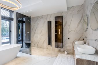 Новый дом бизнес-класса (на 4 спальни, в мастер-спальне 2 гардеробные комнаты + сан узел с панорамным остеклением) площадью 550м.кв (монолит/кирпич). Крытый гараж с панорамно-секционными воротами на 2 машино-места и террасой 100м.кв., над ним. На участке 11,6 сот. сосны. Выполнено мощение территории + озеленение (ели, туи), рулонный газон, произведен дренаж, реализована отмостка, забор. Интерьерная отделка, двух типов : white box и под ключ. Дом, возводится по индивидуальному дизайн-проекту, с применением качественных материалов, премиум уровня. Отделка под ключ, включает в себя кухню со встроенной, итальянской техникой Miele. Возможен вариант меблировки дома. Компактная зона спа с сауной/комнатой отдыха и выходом, на приусадебный участок. Камин. Постирочная и гардеробные помещения.Центральная система вентиляции и кондиционирования. Высота потолков 3,3м. Центральные коммуникации. Теплые полы на 1 и 2-эт. Технологичная система газового отопления, с функцией дистанционного контроля и мониторинга. Система очистки воды. Энерго-сберегающее панорамное остекление, препятствует тепло-потерям в зимний период времени и попаданию ультра-фиолетового излучения, в летний период. Фасадное освещение в трендовой стилистике. 22 км от МКАДа по направлению, вдоль Новорижского шоссе, в охраняемом кп Лесные зори. Поселок с контрольно-пропускной системой, видео-наблюдения, окружен лесом из хвойных пород деревьев. Вся инфраструктура, рядом.