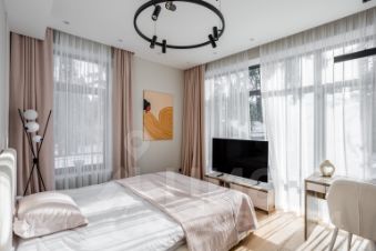 Дом общей площадью 520 м2, включая террасу80 м2 с подогреваемым покрытием в состояниивайт бокс. Дом, расположен на благоустроенноми огороженном забором, лесном участкеплощадью около 13 соток, в окружениикорабельных сосен.Реализован ландшафтный дизайн, уложен газонпремиум качества, высажены новогодняя ель,сосны, туи. Сделан дренаж, выполнено мощениетерритории.Планировочное решение является продуманными функциональным.Этаж 1: просторная и светлая зона кухни-столовой (с отдельной кладовой комнатой, дляхранения продуктов), гостиной с зоной второгосвета и остеклённым потолком (высота потолка вконьке - 7м) + немецкий камин, общей площадьюпорядка 100 м2, с выходом на террасу, гостеваяспальня с гардеробной, сан. узел, котельная,гардеробная.Этаж 2: 2 детские спальни с панорамнымостеклением, с одной из которых, предусмотренвыход на террасу, санузел, постилочная комната,атак же третья, просторная мастер-спальня, сгардеробной комнатой, панорамнымостеклением и видом