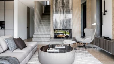 Monteville. Двухэтажный коттедж площадью 470 м² расположен на полевом участке 15 соток. Геометрические линии фасада в минималистичном стиле отражают гармонию простоты и современности. Преобладания белого цвета отделки ярко контрастируют с серыми оттенками и деревянными панелями, придающими конструкции выразительность. Панорамные окна и стеклянные ограждения балкона создают ощущение лёгкости и открытости, заполняя интерьеры естественным светом.Внутри реализован дизайнерский ремонт, который продолжает общую концепцию дома. Основное внимание уделяется нейтральной палитре, включающей белые, серые и графитовые тона, которые подчеркиваются элементами из натурального дерева и металла. Лаконичная мебель с чёткими формами придает динамичность, а текстурные материалы формируют уют. Планировка включает просторную гостиную с камином, кухню-столовую, четыре спальни, кабинет, блок для персонала и гараж на 40 м². На участке проведены ландшафтные работы — засеян газон, высажены взрослые хвойные деревья и кустарники, проложены дорожки и проведено уличное освещение.Поэтажное описание• Первый уровень: прихожая, гостиная-кухня-столовая, рабочая кухня, терраса, спальня с гардеробной и санузлом, кабинет, комната для персонала с санузлом, санузел, гардеробная, гараж, котельная.• Второй уровень: мастер-спальня с гардеробной, санузлом и балконом, спальня с гардеробной и санузлом, спальня с санузлом, балкон.Главное о посёлке. Monteville — закрытый посёлок Villagio Estate с озёрами, каналами и парками: около 115 гектар территории, из них 30 гектар — прогулочные зоны с ландшафтом. Внутри — клубная инфраструктура уровня ''город в городе'': детский клуб и площадки, фитнес с бассейном и SPA, ресторан, супермаркет, пешеходные набережные и пляж с лодочной станцией. Утром — тренировка и завтрак на террасе у воды, днём — дела, вечером — велокруг по парку и кино дома, логистика простая благодаря КПП и 24/7-охране, а также подаче сервисов управляющей компании Villagio. Застройка — классическая европейская стилистика, большие участки и приватность: около 300+ домовладений на участках от 20 соток. До МКАД — ~2324 км по Новой Риге, выезд быстрый и предсказуемый. Формат для тех, кто хочет жить ''за городом по-городскому'': комфорт, сервис и тишина в одном адресе.Главное о локации. На Новой Риге жизнь складывается из лесных троп, озёр и удобной инфраструктуры вокруг. Утром — пробежка вдоль реки Беляны и кофе по дороге в аутлет-городок Novaya Riga Outlet Village, в выходные — семейные прогулки и ужин в ''Павлово Подворье''. Для спорта и статуса — гольф в Moscow Country Club в Нахабино, а для ''культурных каникул'' — музей-усадьба ''Архангельское'' или поездка в Истру в музей ''Новый Иерусалим''. Повседневные задачи решаются ''по пути'': торговые галереи, фермерские лавки, детские активности — всё в ближнем радиусе. Дорога до Москвы — около получаса по Новорижскому шоссе, так что деловые встречи и жизнь на природе не конфликтуют. Это тот случай, когда будни и выходные проходят в одном зелёном контуре.Комментарий эксперта. Меня зовут Ксения Белярова — брокер компании Whitewill. Я отвечаю за продажу этого лота. Свяжитесь со мной, чтобы получить расширенную презентацию, больше фотографий или договориться о просмотре. Могу провести экскурсию по локации и познакомить вас с этим лотом.ID 14 138.