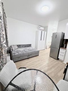 Сдаётся студия площадью 24 кв.м. с дизайнерским ремонтом на 8 этаже в 9-этажном доме. Из техники есть: Телевизор Стиральная машина Холодильник Бойлер Микроволновка Пылесос Дом - монолитный, окна выходят на улицу. В подъезде 1 лифт - 1 грузовой и 0 пассажирских. Во дворе есть бесплатная парковка. Коммунальные услуги по счетчикам оплачиваются дополнительно.Предоплата за 1 месяцЗалог 38 100 ₽