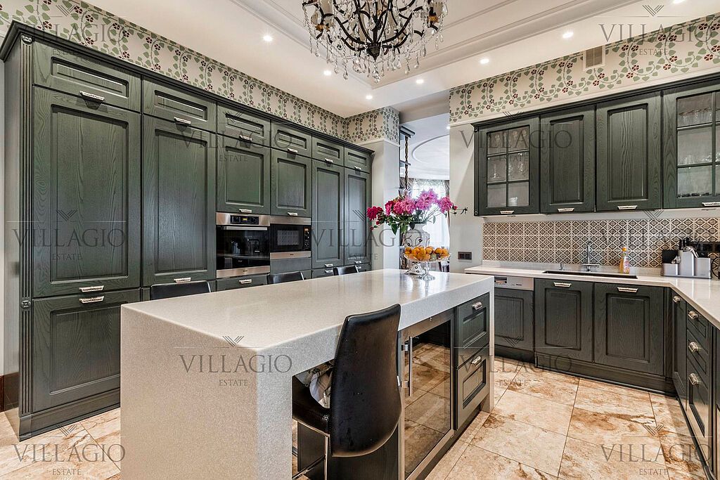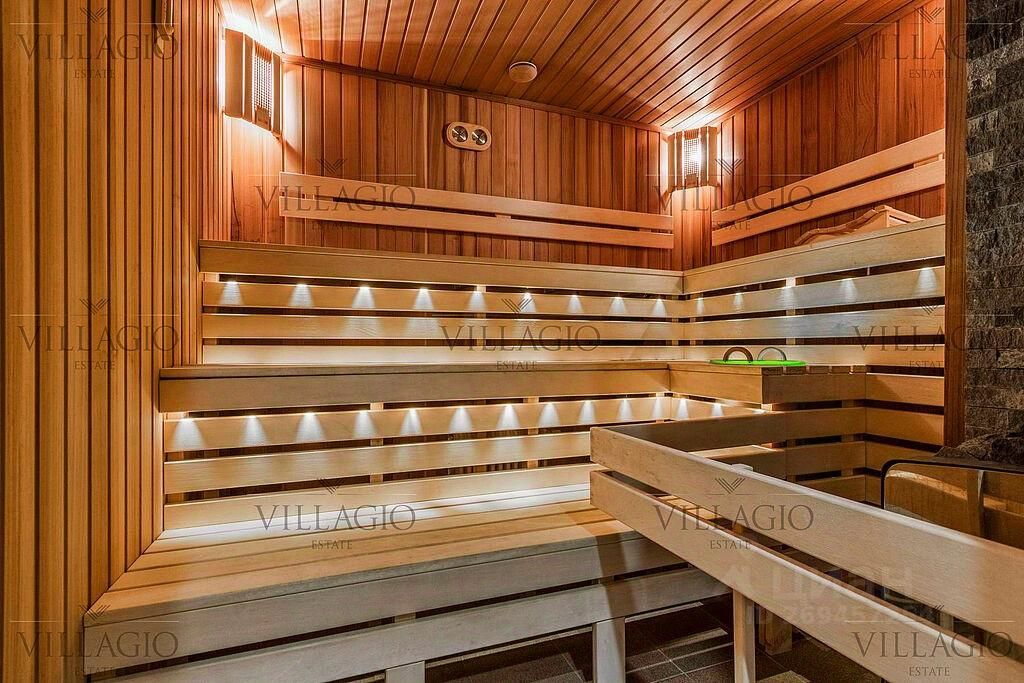 Полностью укомплектованный дом в средиземноморском стиле с фасадами, украшенными авторскими фресками. Полукруглая гостиная, с трех сторон окруженная панорамными окнами, эркерные комнаты, spa-центр с бассейном, сауной и тренажерным залом и застекленная беседка-барбекю, расположенные на просторном участке — основные особенности дома. На первом этаже расположены двусветная гостиная с камином в полукруглой комнате, столовая, кухня, зимний сад, кабинет с с/у прихожая со встроенным гардеробом, холл, с/у, гараж на 2 м/м. На втором этаже — мастер-спальня с с/у и гардеробной, 3 спальни с отдельными с/у, кабинет. В интерьерах преобладают натуральные материалы. На участке выполнен ландшафтный дизайн с прекрасной подборкой вечнозелёных растений, установлено вечернее освещение и автоматическая система полива. Дом построен по монолитной технологии из кирпича, отличается прочностью и долговечностью. Инженерия: все центральные коммуникации, медные трубопроводы и тёплые полы по всей площади плитки, телевидение, интернет, кондиционирование и приточно-вытяжная система. На участке выполнены все дренажные подсистемы. В окружении все соседи построены. До парка с озером и Salon & SPA Royal Riviera меньше 10 минут пешей прогулки. В посёлке и окрестностях никогда не было промышленных производств.