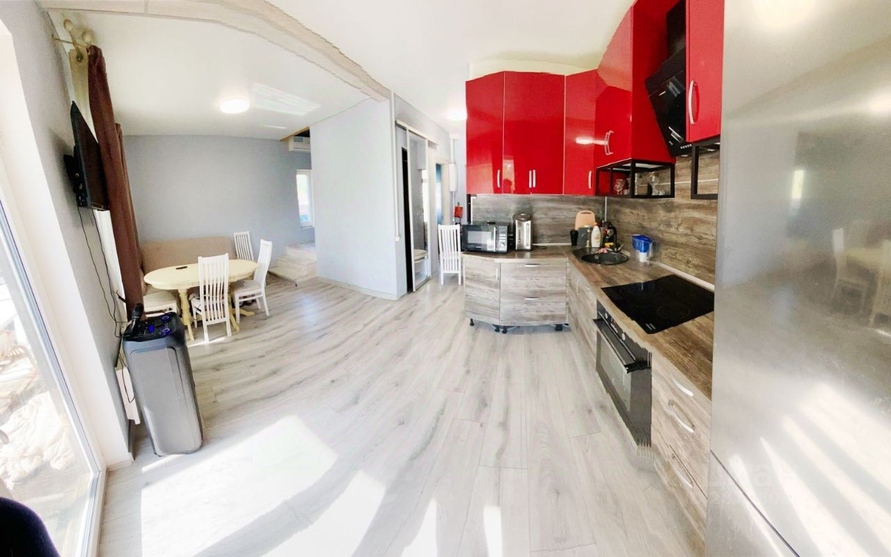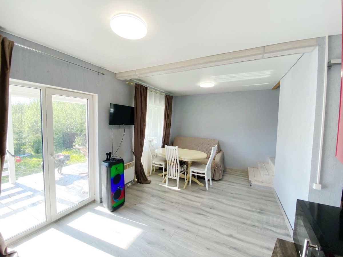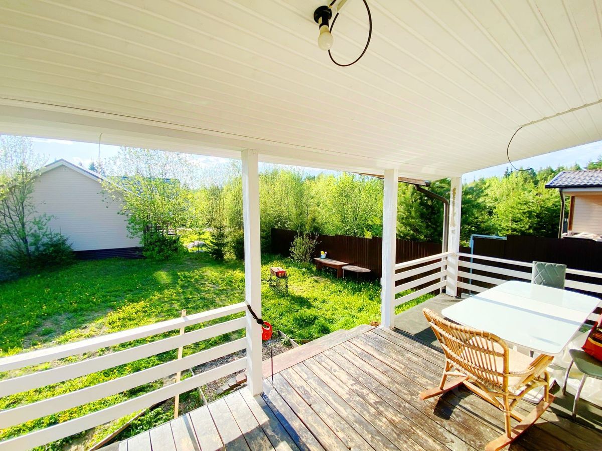 О доме: большая кухня гостиная, три комнаты, санузел с душевой, гардеробная и две террасы открытые для отдыха. Участок выровнен, посеян газон. Парковка на два автомобиля.