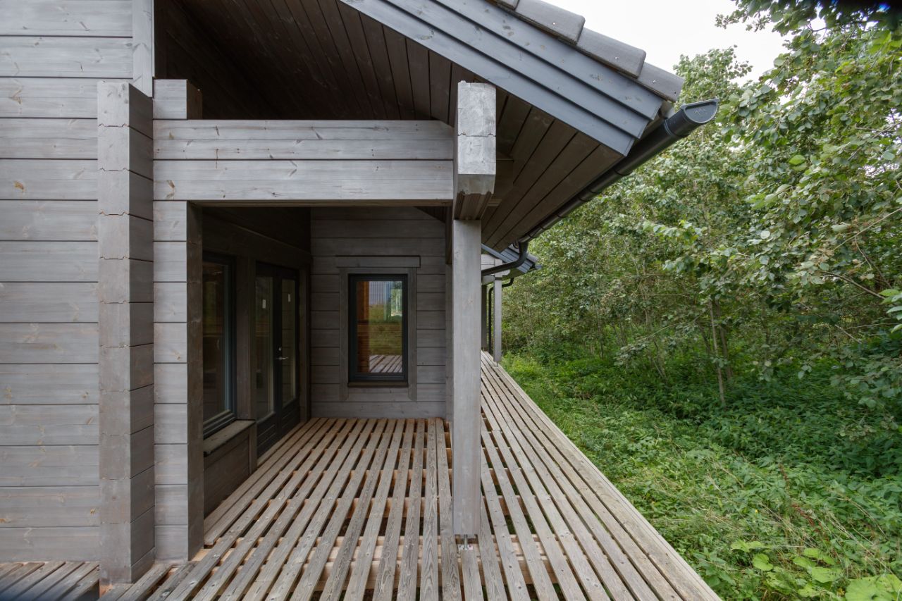 Готовый двухэтажный дом финской компании HONKA расположен на участке 18,5 соток в клубном коттеджном поселке премиум-класса Берег HONKA на берегу Истринского водохранилища. Проект с обилием открытых, свободных пространств является отражением современных технологий деревянного домостроения. Дом состоит из простых, чётких объемов, зато фасады интригуют симфонией ритмичных переходов стен, оконных проёмов, углублений террас. Дом из клееного бруса HONKA, построен по проекту Serenata в лучших традициях финской архитектуры. На первом этаже дома может расположиться кухня-столовая-гостиная с камином и выходом на террасу, просторная зона отдыха с видом, 2 санузла, гардеробная и зона сауны. На втором этаже: спальни с отдельными санузлами и выходом на балкон.