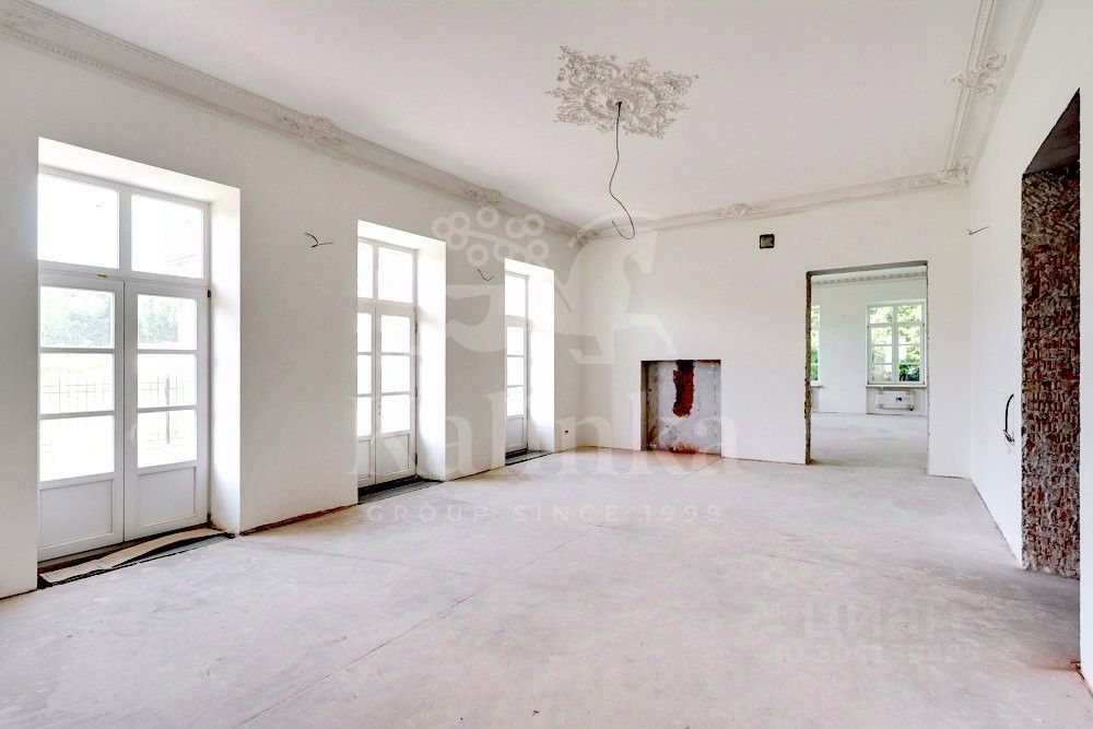 Состояние отделки White Box, дом полностью готов под финишную отделку. Высота потолков 4,25 м на первом этаже, 3,85 м на втором этаже, и до 6 м в мансарде. Все комнаты имеют большие окна, поэтому дом кажется очень светлым и солнечным. Во всех комнатах лепнина во французском стиле, установлены мраморные подоконники. Проведены и функционируют все коммуникации.