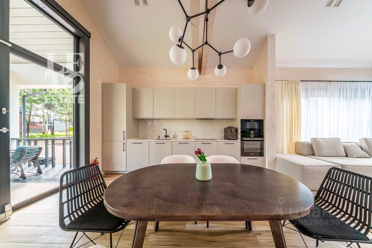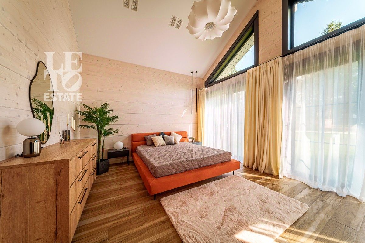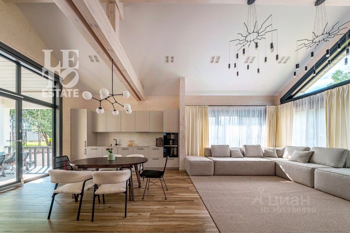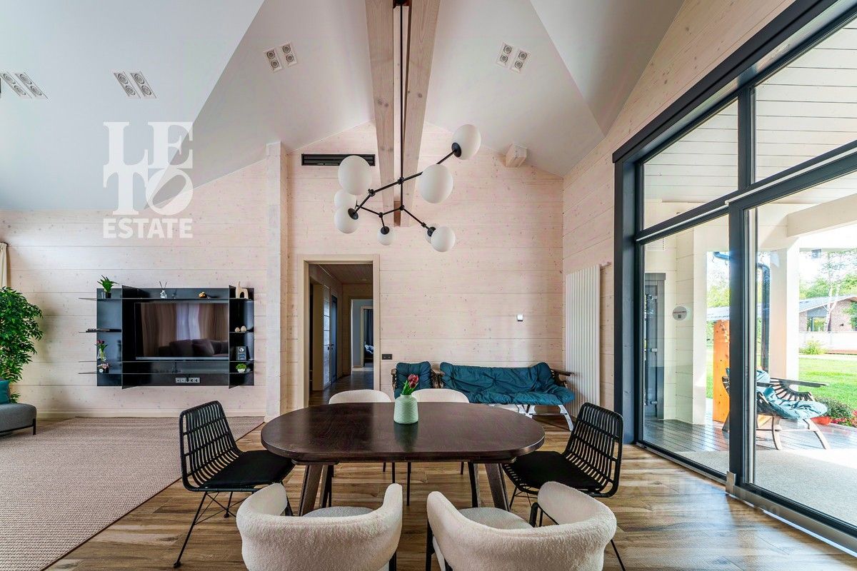 Дом выполнен по уникальному проекту ''Луна'', в современном стиле, сочетающем в себе актуальную архитектуру и комфортную концепцию для загородной жизни. Дом построен компанией Holzbaken из клеёного бруса 365х202 на фундамента из железобетонных 4-метровых свай 200*200 мм с обвязкой клееным конструктивным брусом. Установлено панорамное остекление. Кровля кликфальц, крыша дополнительно утеплена, установлены снегозадержатели и водосточная система. В котельной установлены 2 котла: электрический и газовый, система водоочистки, вентиляционная система и система увлажнения воздуха.