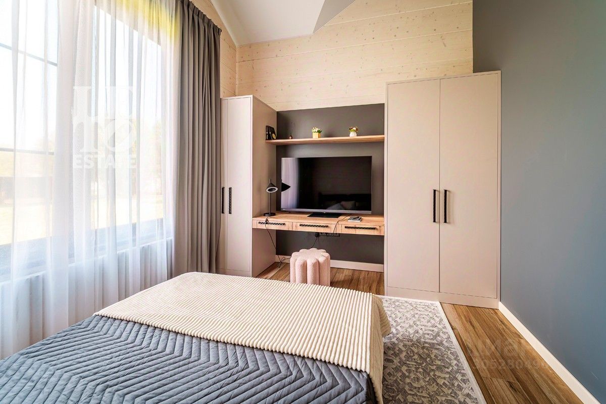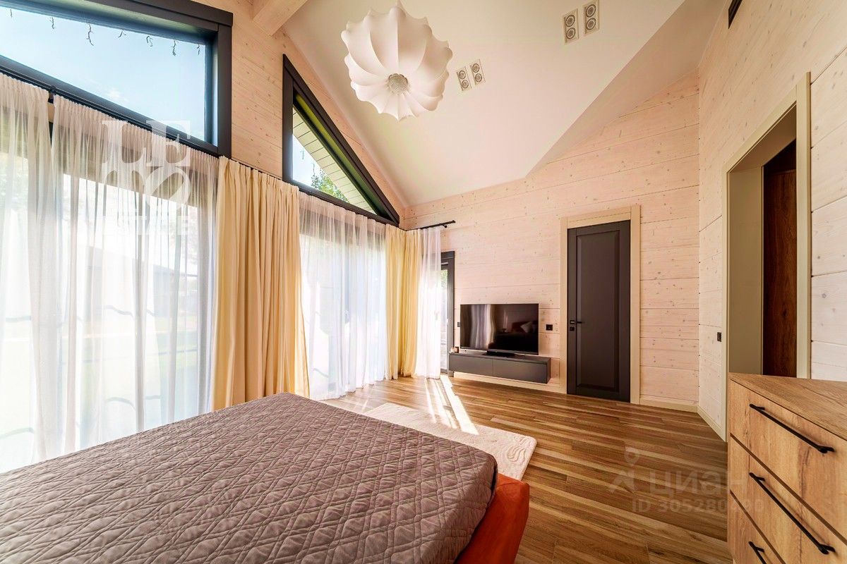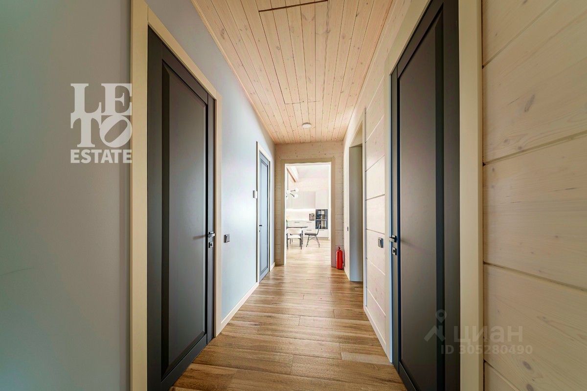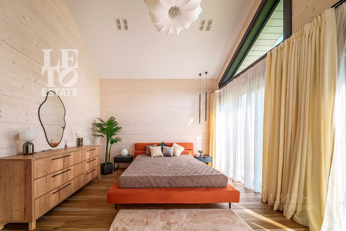 Дом выполнен по уникальному проекту ''Луна'', в современном стиле, сочетающем в себе актуальную архитектуру и комфортную концепцию для загородной жизни. Дом построен компанией Holzbaken из клеёного бруса 365х202 на фундамента из железобетонных 4-метровых свай 200*200 мм с обвязкой клееным конструктивным брусом. Установлено панорамное остекление. Кровля кликфальц, крыша дополнительно утеплена, установлены снегозадержатели и водосточная система. В котельной установлены 2 котла: электрический и газовый, система водоочистки, вентиляционная система и система увлажнения воздуха.