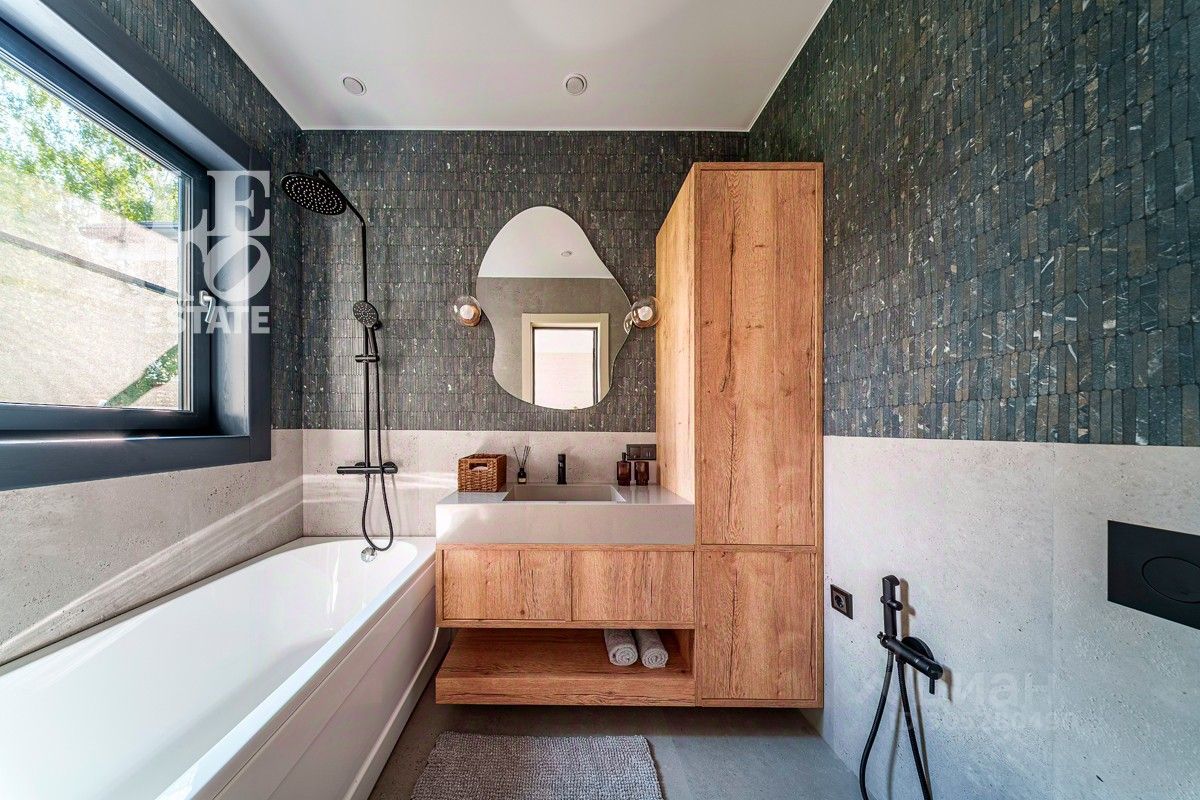 Дом полностью готов к проживанию: сделан дизайнерский ремонт, установлена мебель, сделанная на заказ по дизайн-проекту, установлена вся необходимая техника премиальных марок, освещение от топовых брендов. При внутренней отделке использовались исключительно качественные натуральные материалы. Во всем доме сделаны теплые водяные полы с автоматической системой поддержания температуры. Также дом оснащен системой кондиционирования, приточно-вытяжной вентиляции с дополнительным увлажнением воздуха по всему дому.
