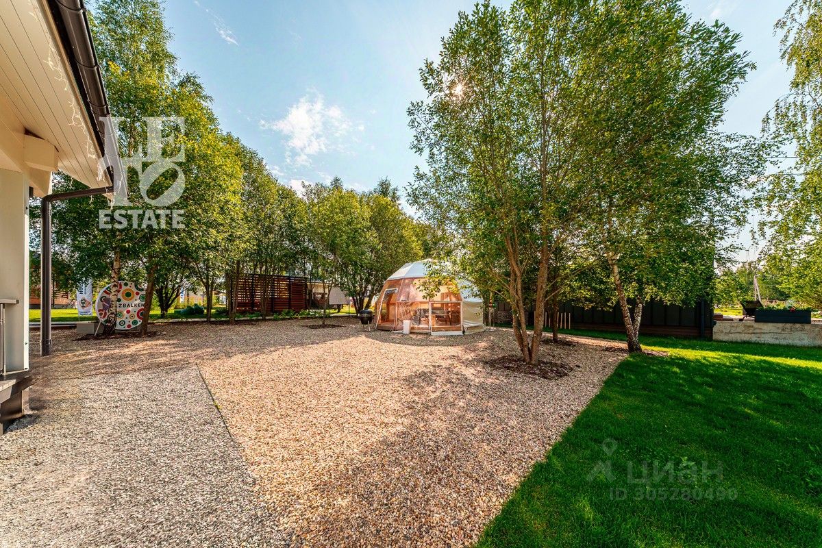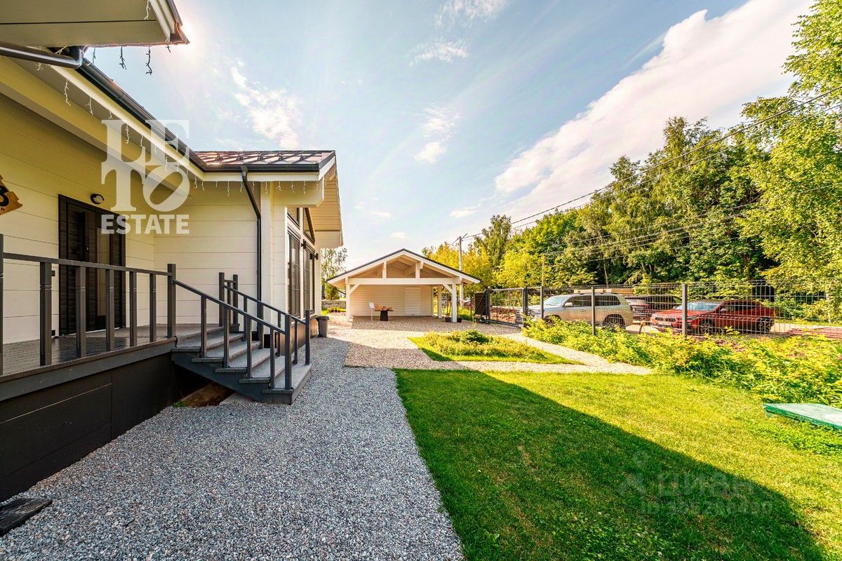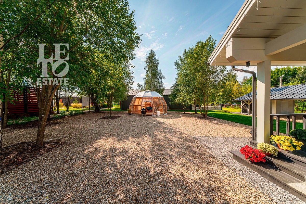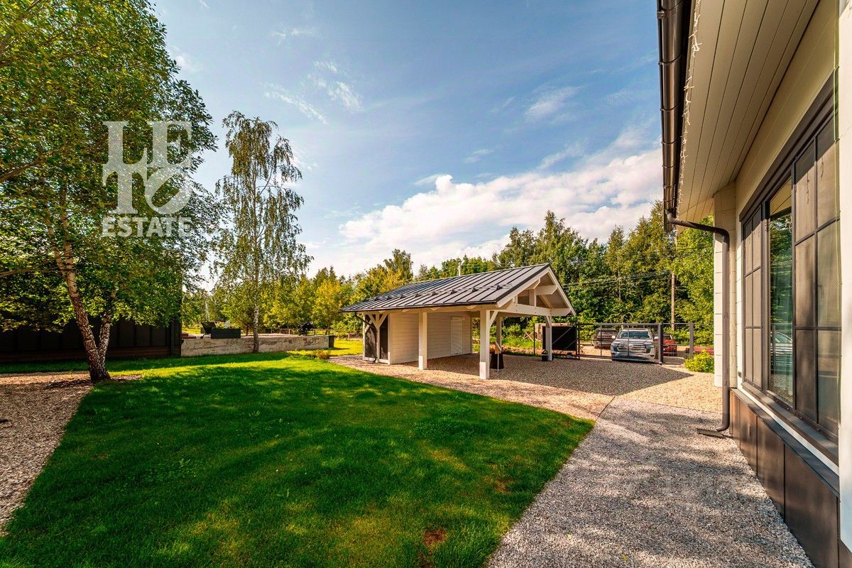 Дом расположен на квадратном ровном участке площадью 14,52 сотки, выполнен ландшафтный дизайн, сделана система автополива, установлено освещение. Организована въездная группа с автоматическими откатными ворота. На территории участка дополнительно сделан навес на два автомобиля и отдельное помещение для хранения садового инвентаря и инструментов.