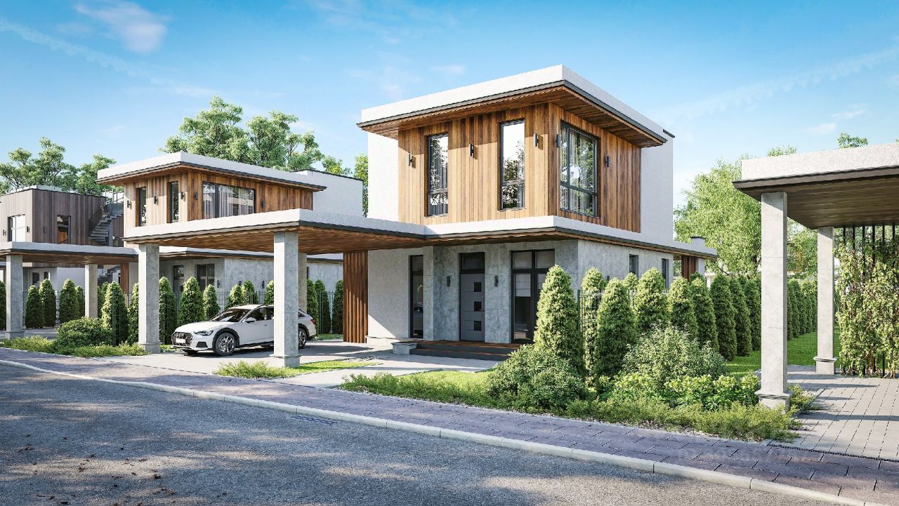 Современный кирпичный коттедж в закрытом жилом комплексе Новое Бакеево Современный квартал. Это уединенное место среди леса в 3 км от Зеленограда. Вдоль посёлка протекает река, на протяжении которой обустроена прогулочная зона, детские и спортивные площадки. В инфраструктуру входит: магазин, кафе, фитнес-клуб, детский сад, бесплатный транспорт до Зеленограда. Материалы строительства: Каркас: монолит Стены: кирпич Утеплитель: минеральная вата Отделка фасада: вентилируемый фасад из hpl мокрый фасад Лестница с 1 на 2 этаж железобетонная внутри дома и винтовая снаружи.