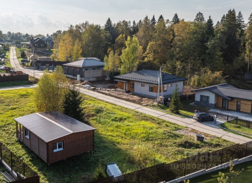 На участке есть небольшой новый домик (возможно использовать как жильё для строителей), к нему подведена вода, сделан септик (газ и центральная канализация по границе). Посёлок полностью застроен.