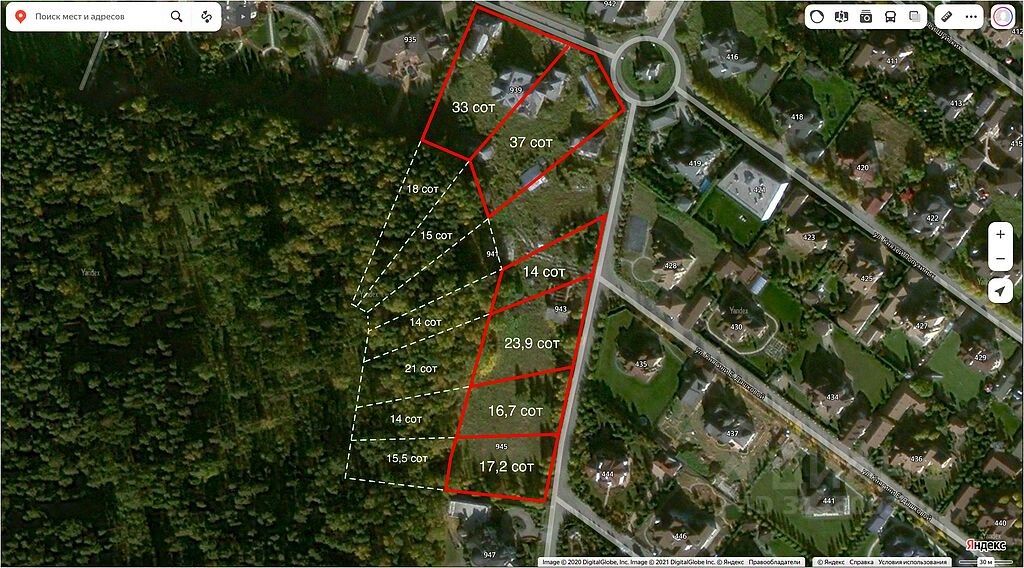 Участок 17.24 соток у леса в коттеджном поселке ''Княжье Озеро''. VIP зона поселка со своим шлагбаумом на территории, участок крайний с выходом в лес. Возможно объединение участков.