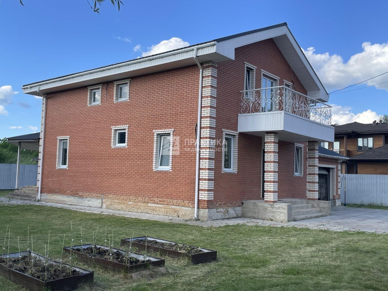 Код объекта: 1497415. Новорижское шоссе 50 км. от МКАД. Двухуровневый кирпично-каркасный, современный, меблированный дом площадью 205 кв.м. 2019 г. Стены - oцинкoванный (завoдскoй) кapкас, утеплeниe, фасад - облицовочный кирпич. Кровля металлочерепица, фундамент ленточный. В доме предусмотрен гараж на 1 авто (24 кв.м). На 1 этаже: гостиная-столовая (36,8 кв.м) с выходом на закрытую террасу (16,4 кв.м), кухня, котельная с газовым котлом Buderus, гостевой санузел, комната (кабинет),холл, кладовая под лестницей. На 2 этаже: 2 детские комнаты + мастер спальня с выходом на балкон со своей ванной комнатой и гардеробом. На этаже так же есть санузел с душевой и гладильная комната площадью 6,9 кв.м. Первый этаж отапливается водяным теплым полом, на втором установлены радиаторы. Дом очень теплый. Вокруг дома смонтирована дренажная система. Участок 10 соток ровный, сухой, правильной формы, огорожен забором из профнастила на ленточном фундаменте с кирпичными столбами. На участке двухэтажный гостевой дом/баня из газоблоков, площадью 75 кв.м. На 1 этаже: сауна, комната отдыха, душевая, туалет, кухня. На 2 этаже: 2 спальные комната (13,5 кв.м. +16 кв.м.). В гостевом доме можно жить круглогодично, первый этаж отапливается электрическими теплыми полами, второй этаж электрические батареи. Рядом с гостевым домом беседка 18 кв.м. с зоной барбекю, дровня. Перед домом парковочная зона на 4 авто, вымощена тротуарной плиткой, откатные ворота с электроприводом от пульта. Коммуникации: электричество 15 кВт, магистральный газ, вода- колодец, канализация-септик Топас. В ДНП ''Веретея'' закрытая территория, поселок заселенный. Круглогодичный комфортный подъезд к дому. Развитая инфраструктура: рядом магазины пятерочка и магнит в 5 мин пешком и остановка общественного транспорта. Недалеко от посёлка находятся 2 школы, детский сад, станция ''Румянцева'' 40 минут до Москвы на электричке. До Истры 10 минут на машине и 30 мин до Москвы по скоростному шоссе (50 км) от MKАД. В доме возможна прописка. Тихое место, рядом лес. Хорошие соседи. Прекрасно подходит для постоянного проживания и отдыха. Один взрослый собственник. Полная стоимость в договоре.