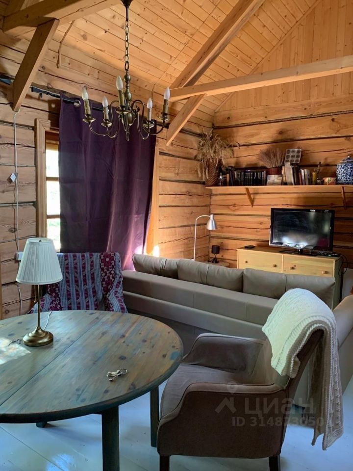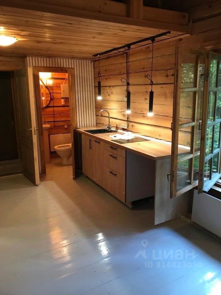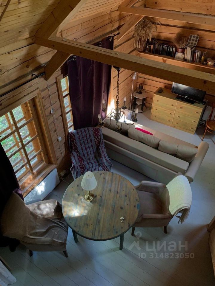 Сам дом около 70м (деревянный), с высокими потолками. ДВУХУРОВНЕВОЕ пространство в виде студии: просторная кухня+ гостиная, 2 санузла ( один с душевой кабиной, второй гостевой), по лестнице наверх антресоль с открытой спальной комнатой.