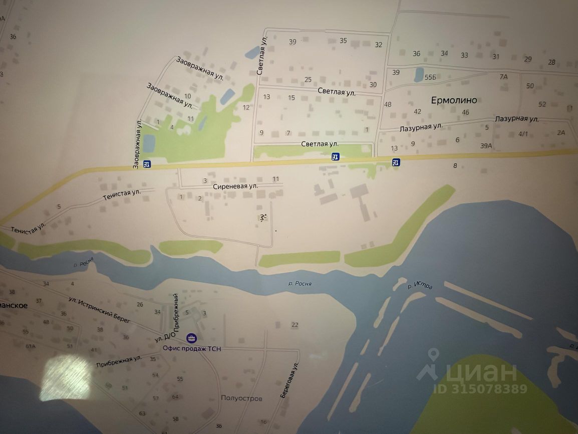 Продаётся ровный сухой участок правильной формы в деревне Ермолино, на берегу реки Росня, которая впадает в реку Истра. без обременений по строительству.