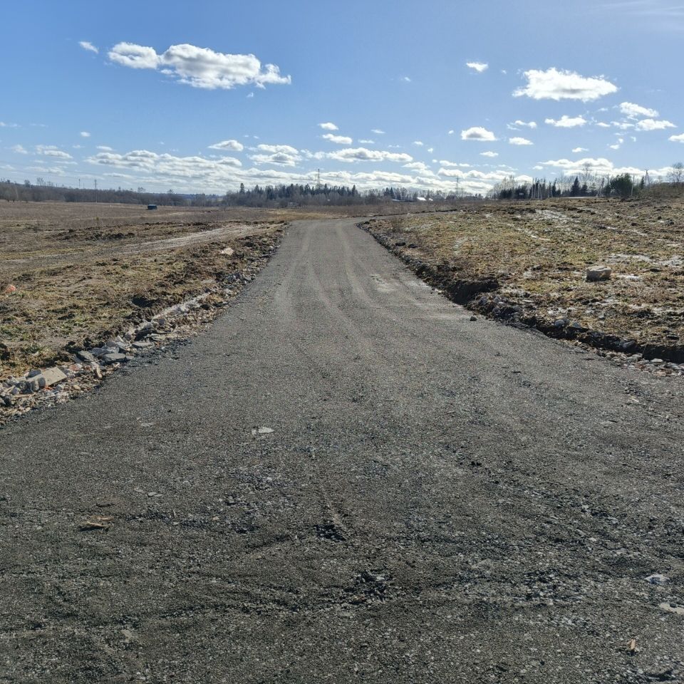 Участок расположен рядом с дорогой с асфальтной крошкой. Преимущество — близость к въезду в поселок и автобусной остановке (7 мин пешком).