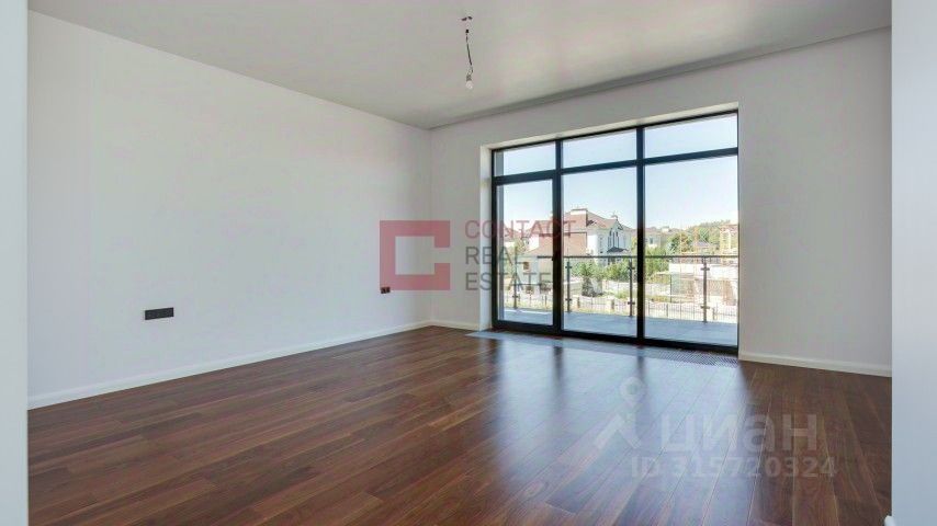 ID 541863. КП Монтевиль. Новый современный дом в элитном коттеджном поселке. Современный фасад с панорамными окнами облицован камнем и деревом. Интерьер выдержан в светлых оттенках, полы выполнены из керамогранита и орехового паркета, ванные комнаты оборудованы сантехникой Villeroy&Boch. Планировка дома: 1 этаж: прихожая, гардеробная, гостевой санузел, гостиная, столовая, кухня, спальня, гараж на два машиноместа,