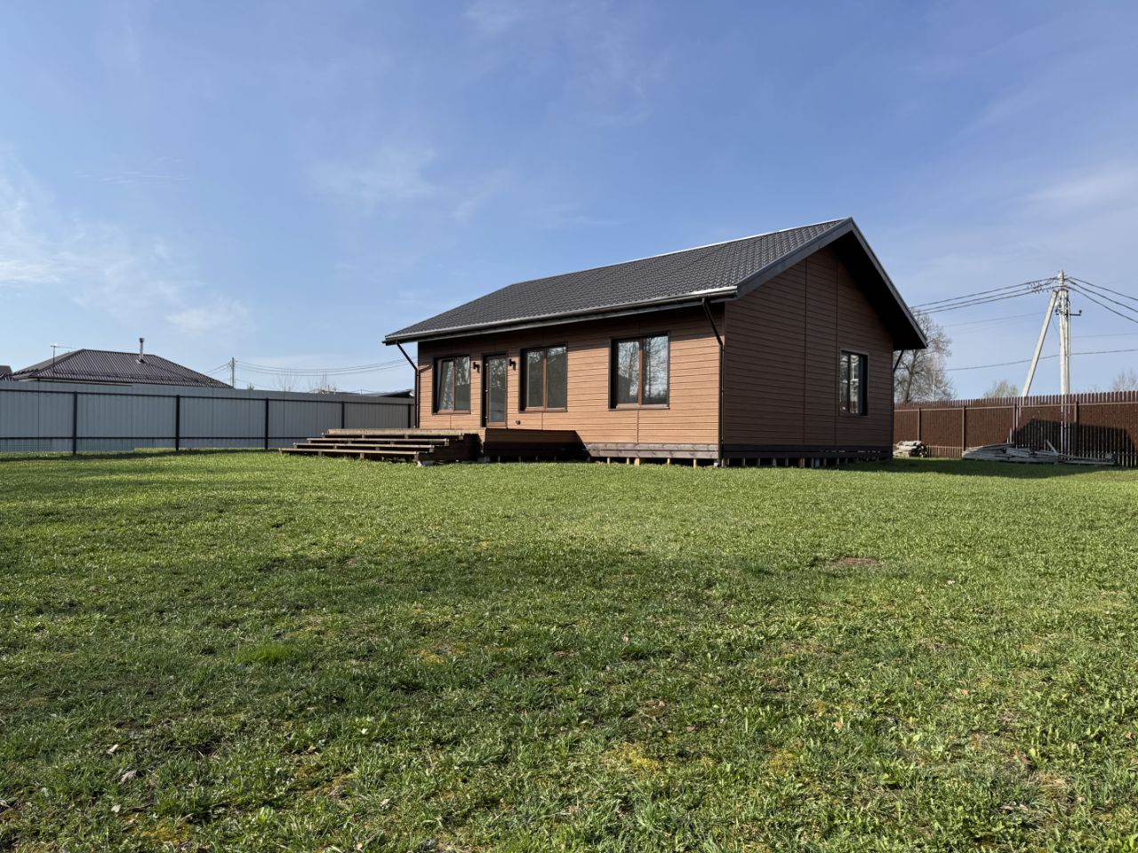 Дoм cтpoилcя из качественной древесины камерной сушки. Стоит на железобетонных сваях. Скрытая проводка электричества, водоснабжения и отопления.