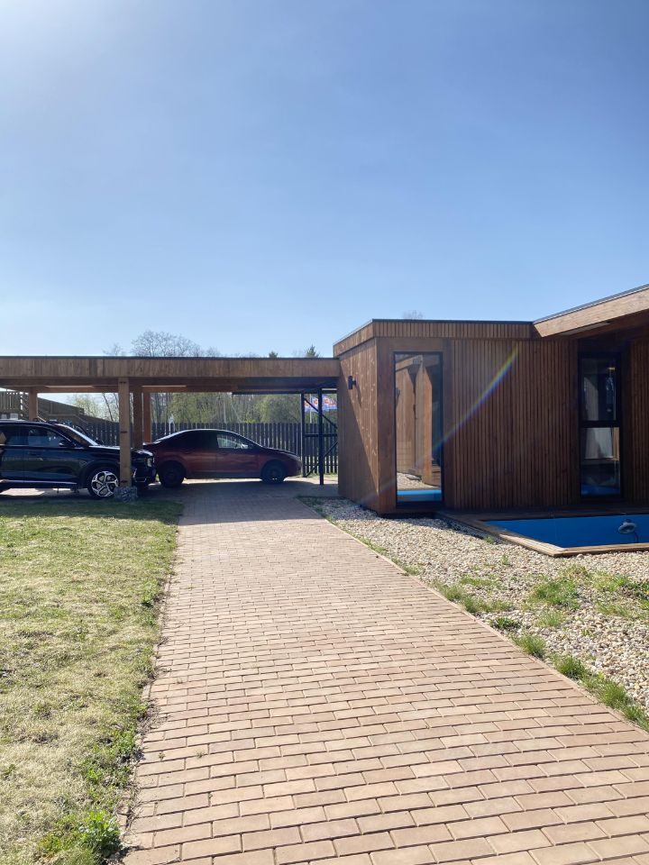 Современный, стильный, экологичный и энергоэффективный дом построенный по современной технологии из CLT панелей (перекрестно-клееные деревянные плиты).