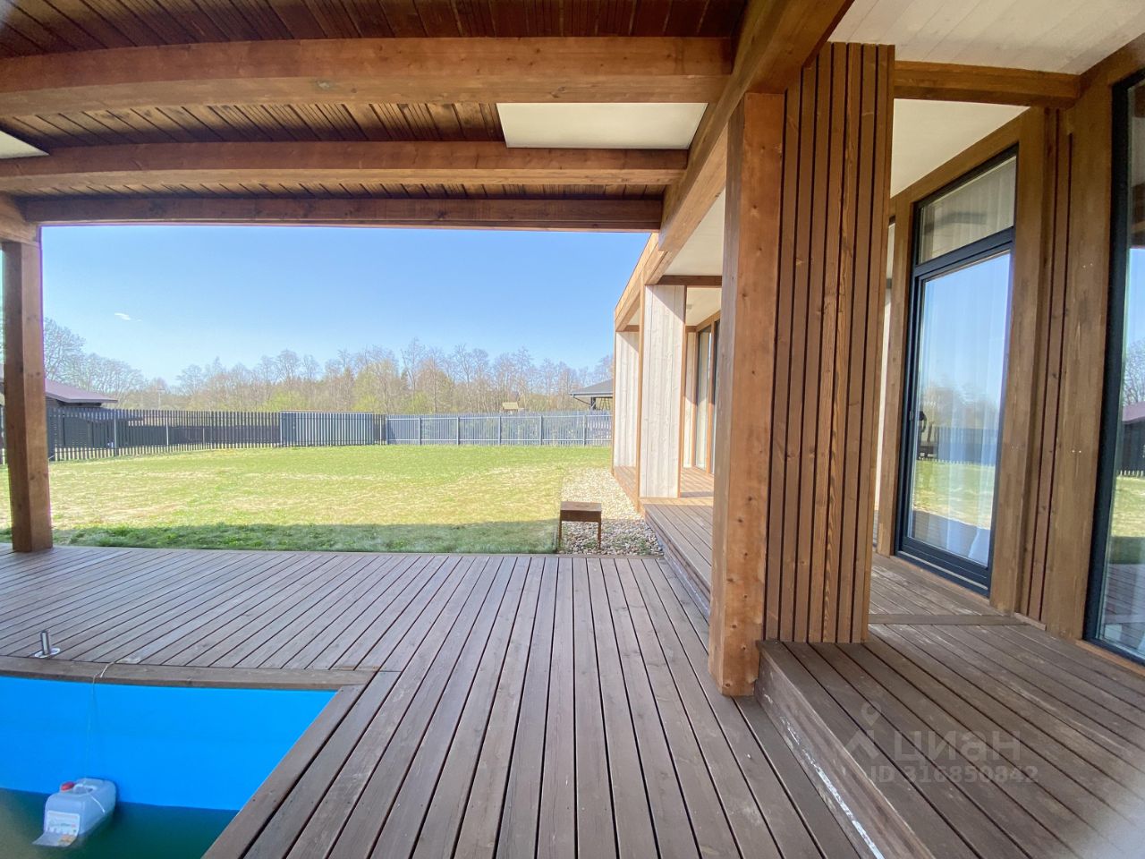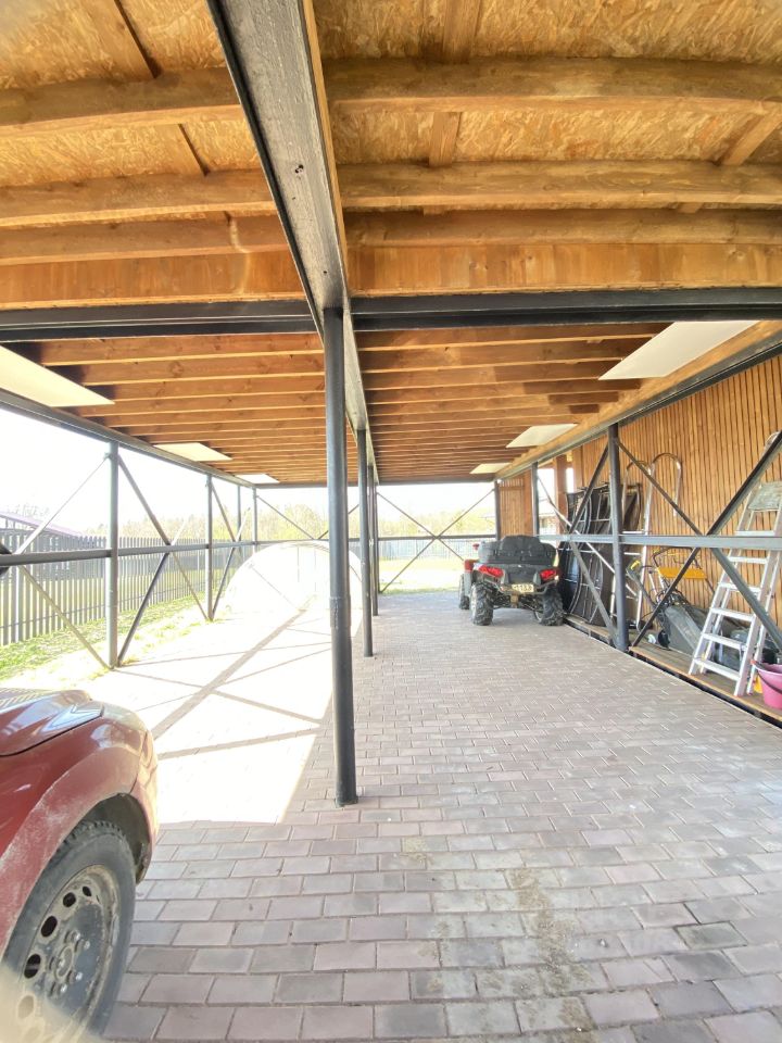 Дом идеально походит для круглогодичного проживания семьи с детьми. Удобная функциональная планировка: гостиная с выделенной кухонной зоной, три спальни, большая прихожая, два санузла. Отдельно стоящая баня/сауна, крытая терраса с бассейном, большой навес на 4 автомобиля и открытое парковочное мест перед навесом еще на 2 автомобиля.