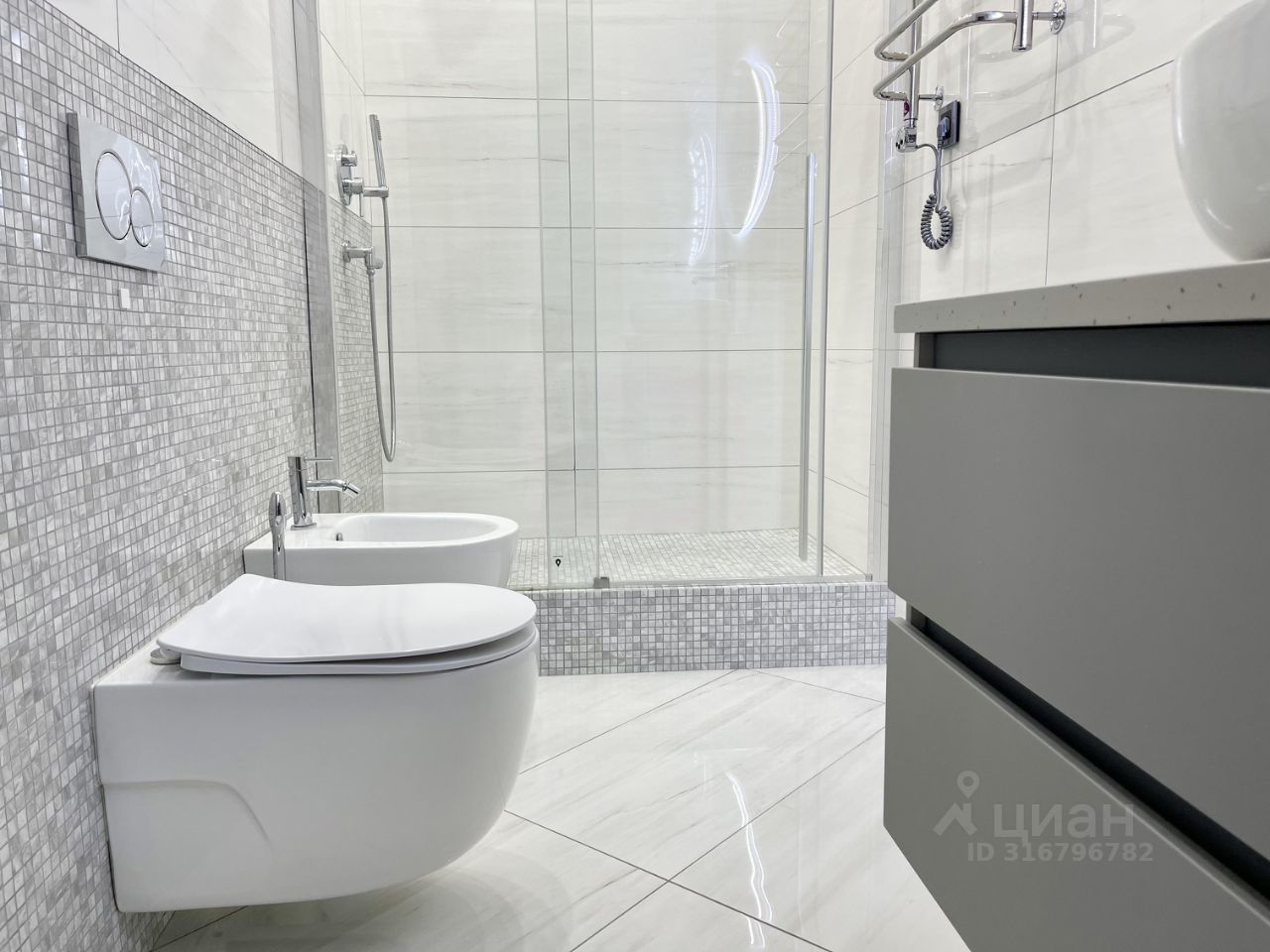 Выполнен стильный ремонт по дизайн-проекту, кухня под заказ, техника ведущих международных производителей. Натуральные материалы - пол из керамической плитки и инженерной доски. Подогреваемый пол в холодных зонах.