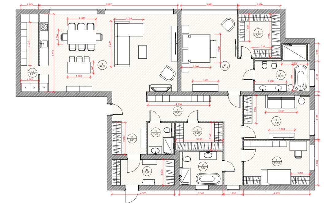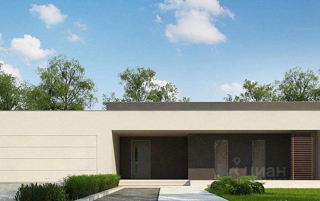 В доме предусмотрены: входная группа, гостиная, совмещенная с кухней и столовой зоной и выходом на патио, гардеробная, санузел, постирочная, мастер-спальня с санузлом и гардеробной, 2 спальни, гараж на 2 авто, бойлерная.