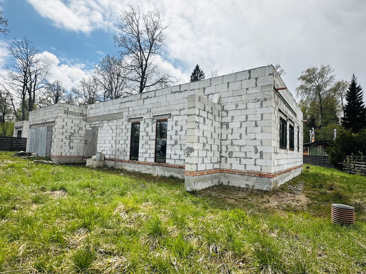 Срочно продается одноэтажный дом под отделку без отделки фасада в строгоохраемом КП со всеми центральными коммуникациями на участке в тупиковой зоне поселка с выходом в лес!