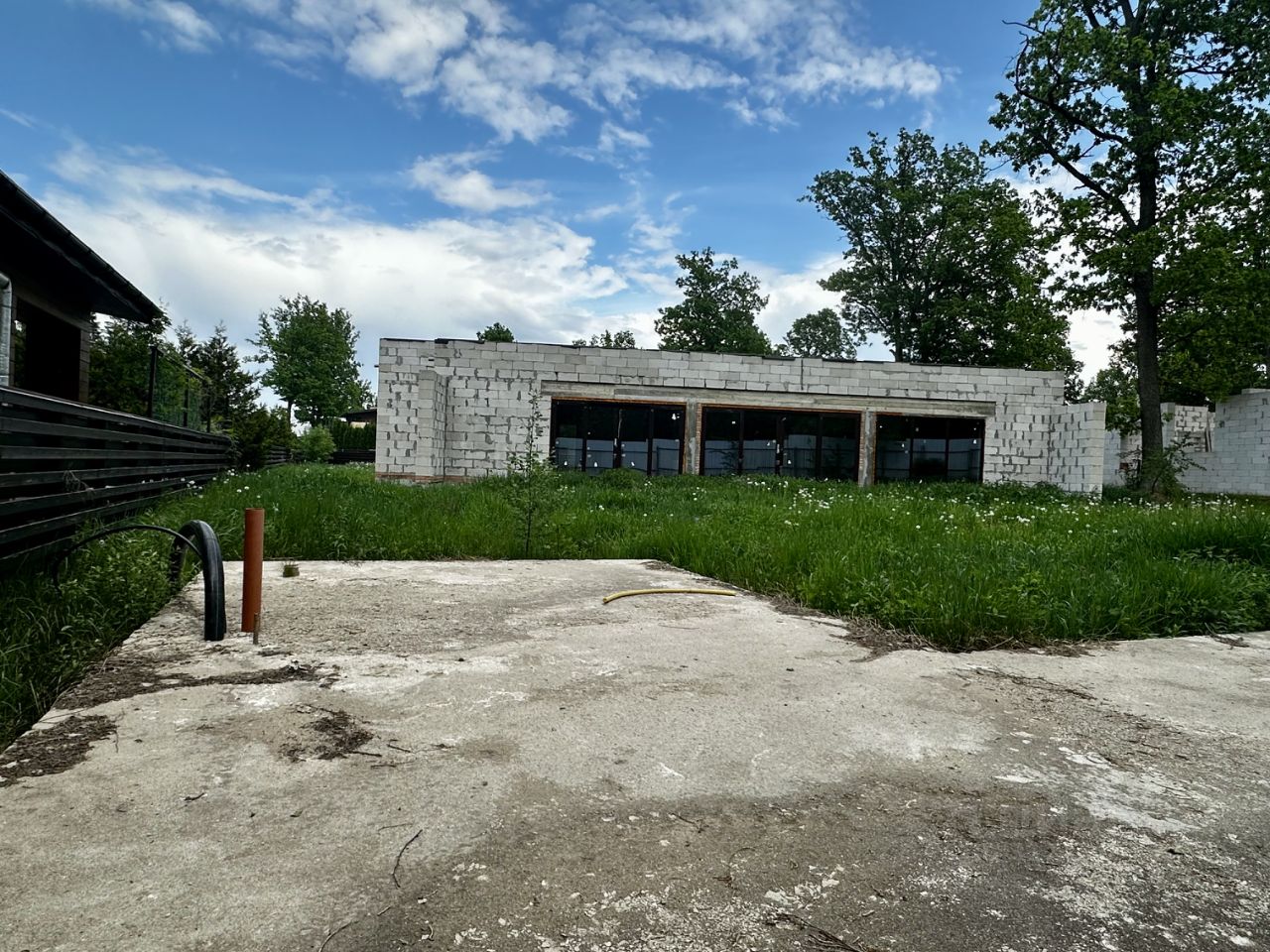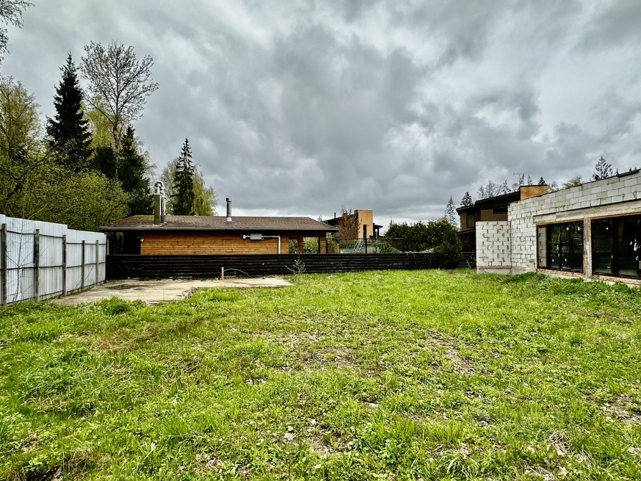 На участке дополнительно залит фундамент под закрытую зону барбекю с заведенными коммуникациями.