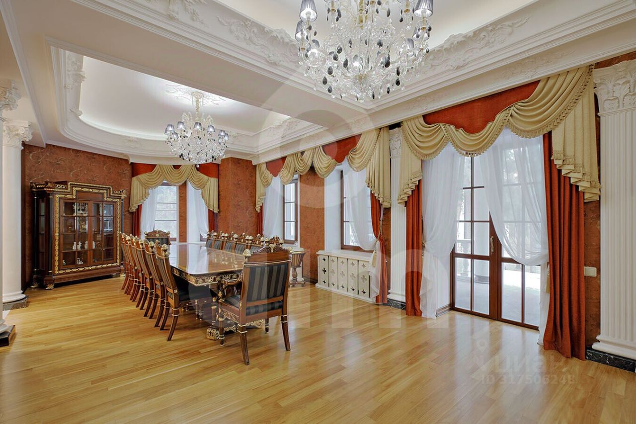 Роскошная резиденция в элитном поселке ''Шервуд'' Предлагается к продаже великолепный загородный дом площадью 800 м², выполненный в изысканном классическом стиле. Интерьеры украшают натуральная лепнина, фрески под световым куполом, мраморные покрытия, итальянская мебель премиум-класса и дорогая сантехника. Каждая деталь резиденции продумана до мелочей, создавая атмосферу роскоши и уюта. Дом расположен на живописном участке 50 соток, окружённом взрослым хвойным лесом. Территория благоустроена: ландшафтный дизайн, ухоженный газон, декоративные кустарники, архитектурное освещение, зона барбекю, гостевой дом, гараж на 2 автомобиля с жилым блоком для персонала. Здесь царит абсолютная гармония с природой: пение птиц, чистый воздух и полная уединённость.