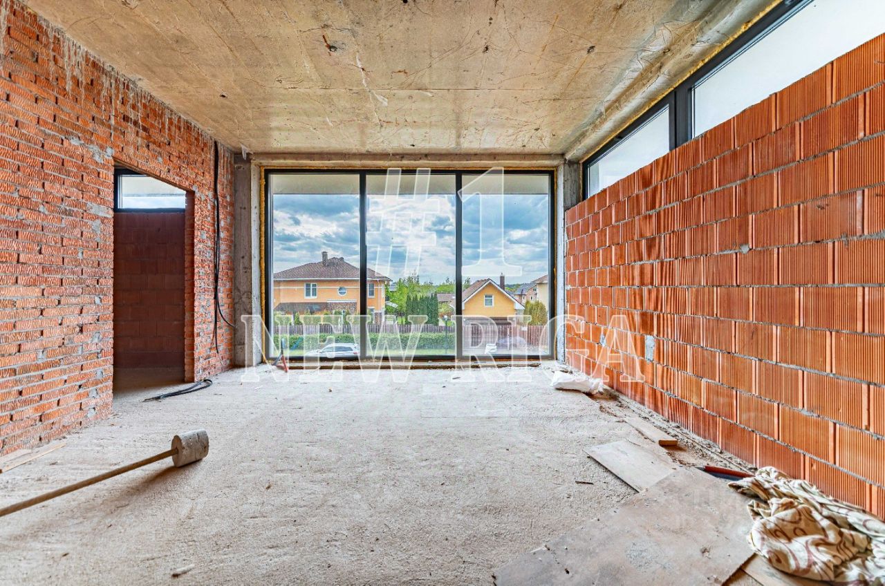 Планировка:1 этаж — прихожая, гардеробная, кухня-столовая-гостиная с выходом на веранду, спальня с гардеробной, с/у, ванная, постирочная, 2 кладовые, котельная, гараж на 2 м/м