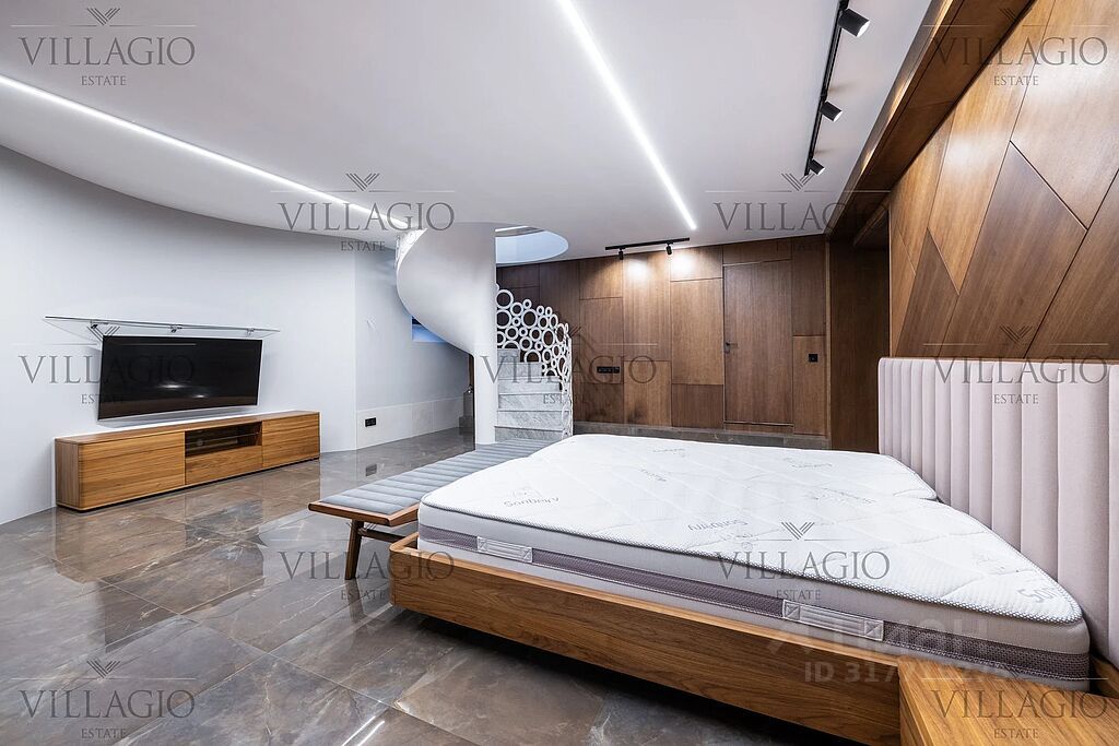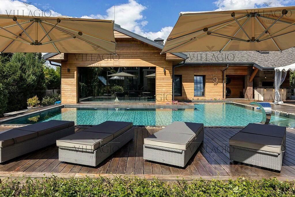 Участок: 44,2 сотки правильной прямоугольной формы в 5 минутах прогулки от Центрального Парка поселка. Два въезда на территорию (к основному дому и гаражу). Полностью благоустроен, выполнен ландшафтный дизайн, розарий, теплица, игровая зона, детский домик. Установлено видеонаблюдение, вечернее освещение, беседки и зона отдыха у открытого бассейна, костровая точка и зона барбекю с барной стойкой, дорожки выложены гранитными плитами, система автополива по всей территории участка, артезианская скважина.