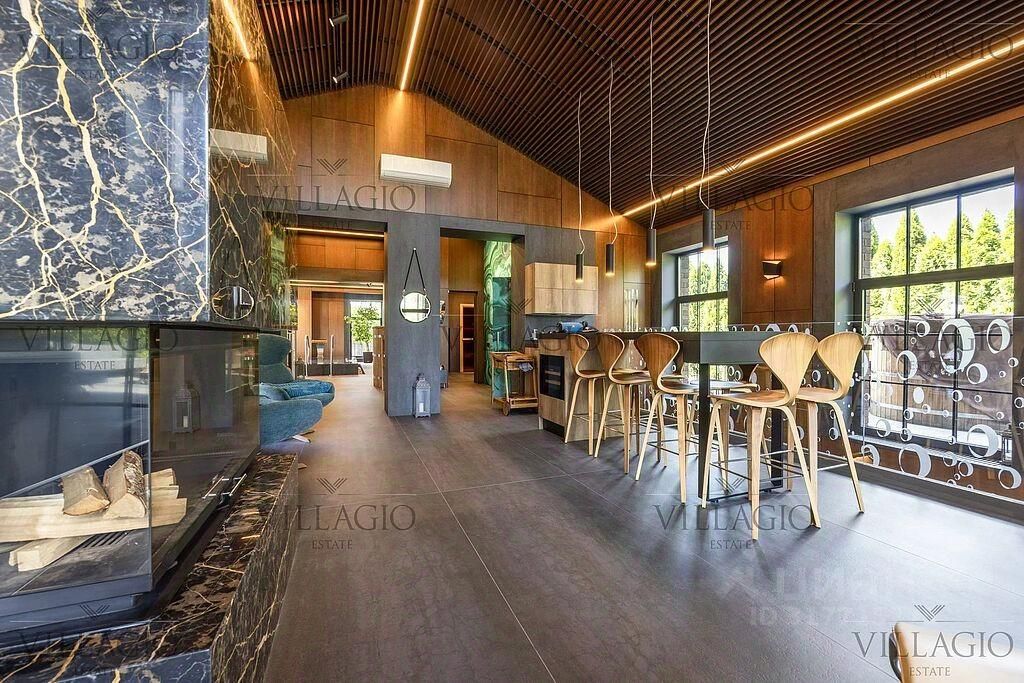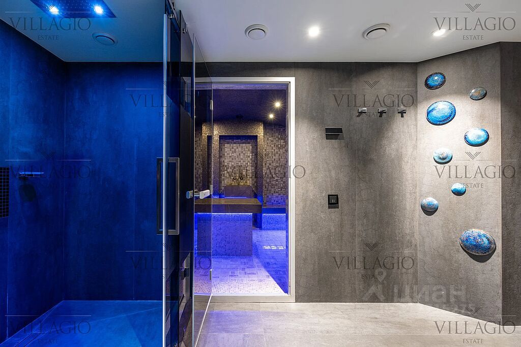 СПА: отдельно стоящее здание, площадь 278,7 м². Состоит: сауна с дровяной печью, бассейн (оборудована живая стена из растений площадью более 10 м²), бочка с холодной водой, душ с переливным ведром, большой зал с дровяным камином, кухня, стол на 8 гостей, раздевалка со шкафчиками, соляная комната (пещера галокамера) с декоративным камином и системой подачи соленого воздуха, хамам, солярий и большая душевая. На улице располагается дровяное барбекю, барная стойка, бочка для купания на 6 человек с дровяной топкой для обогрева воды, газовый гриль Napoleon.