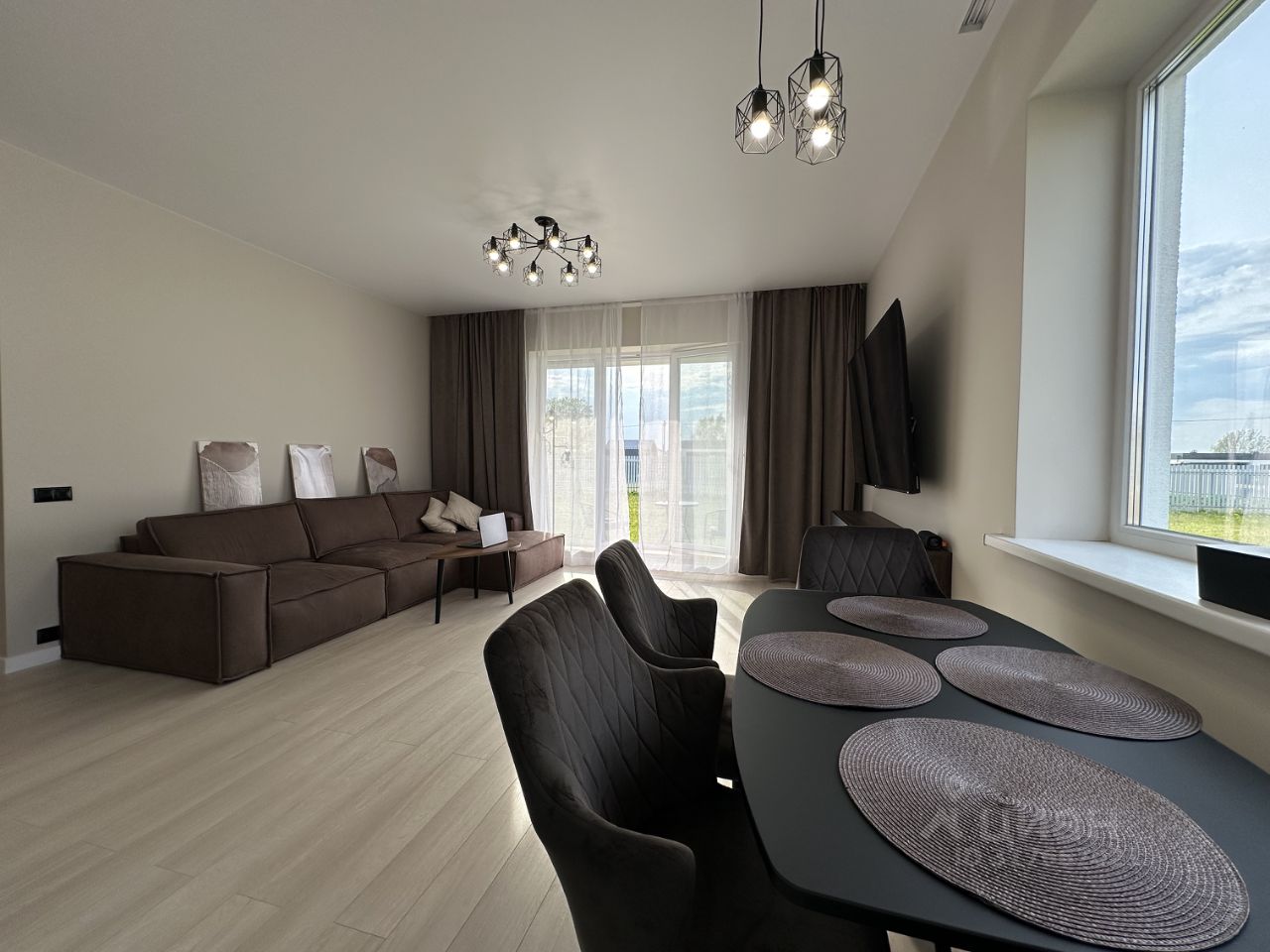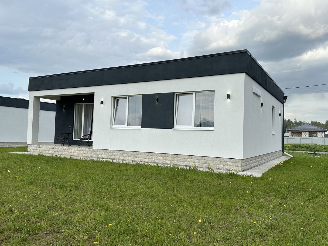 Планировка: прихожая, котельная, просторная кухня-гостиная с выходом на патио, 3 спальни, гардеробная, 2 с/у. Эксплуатируемая плоская кровля.