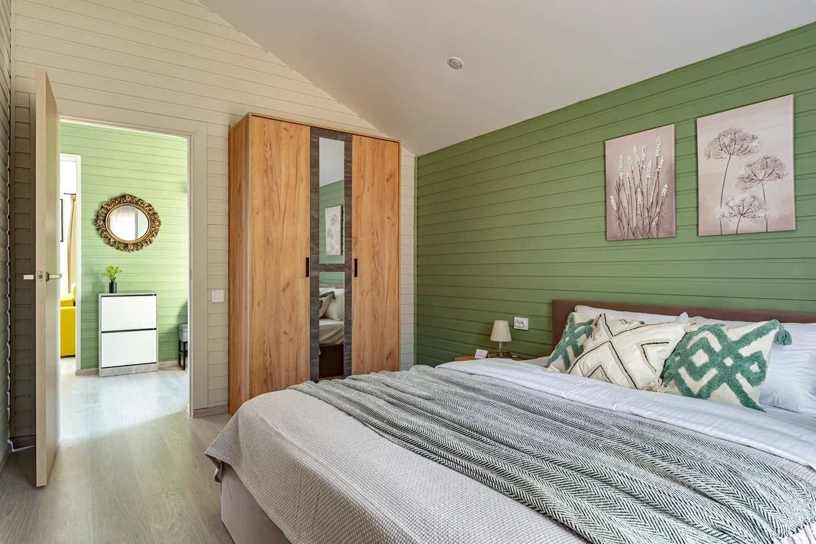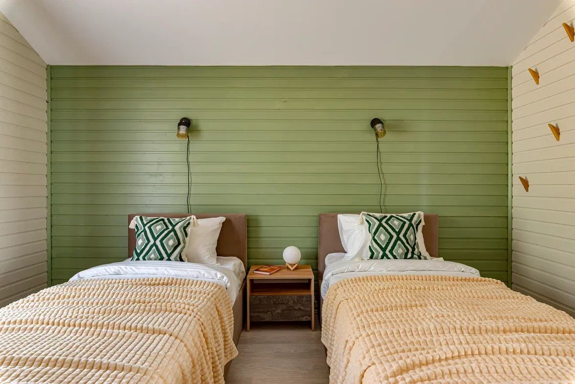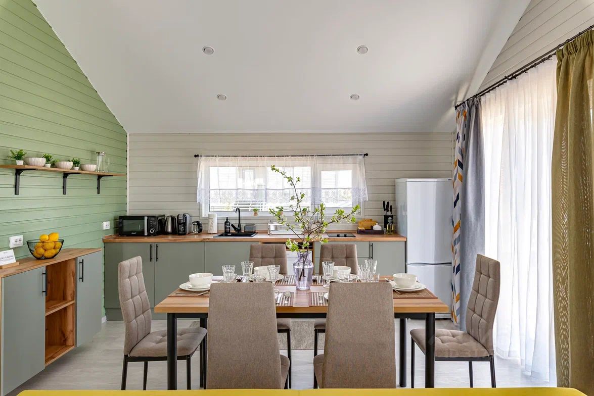 • Современный каркасный дом 60 м² с небольшой открытой террасой • В доме 2 спальни (двуспальная и две односпальные кровати), кухня-гостиная (диван раскладной) и один санузел • Вмещает до 6 человек • Дом укомплектован мебелью и техникой • Полностью оборудованная кухня (плита, холодильник, свч, кофемашина, посуда) • Кондиционер, стиральная машина • Телевизор и Wi-Fi, игровая консоль с ретро играми