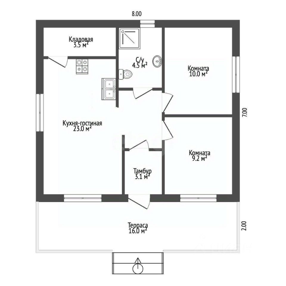 Номер в базе: 7846325. Подходит под семейную ипотеку. Продаеться новый каркасный дом площадью 72 кв.м, расположенный на участке 7.5 соток в д. Сысоево В доме 2 спальные комнаты 9 и 10 кв.м. с/у 4,5 кв.м. кухня гостинная 23 кв.м. кладовка 3.5 кв.м. терраса 16 кв.м.