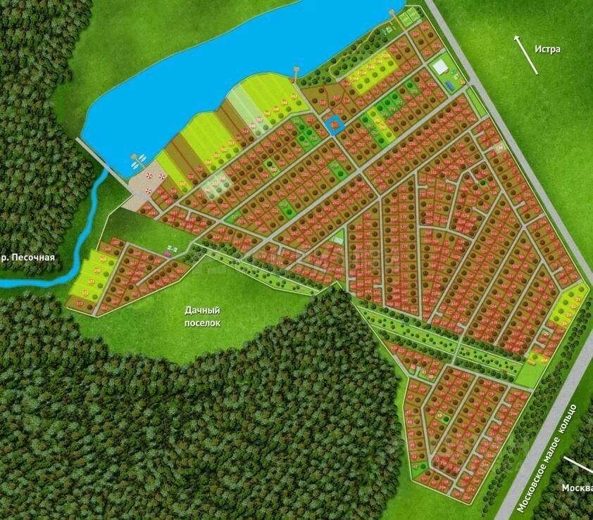 Развитая инфраструктура: На территории озеро с благоустроенным пляжем и причалами, зоны для рыбалки и барбекю, спортивные и детские площадки. В пешей доступности находится новый торговый комплекс с продуктовыми магазинами, кофейнями, ресторанами, аптекой. Рядом с поселком автобусная остановка с возможностью добраться до г. Истра.