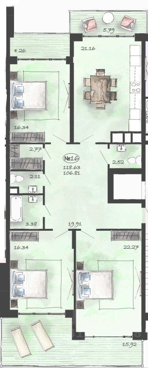 Квартира расположена на втором этаже, идеальна для тех, кто хочет получить большое пространство для жизни, но в одном уровне. Для самых изыскательных покупателей.