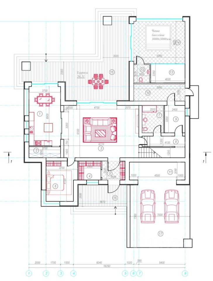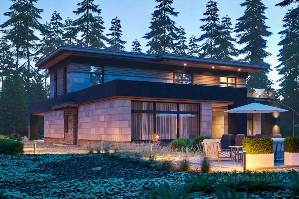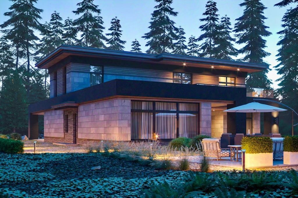 Планировка: 1 этаж - кухня, гостиная, спальня/кабинет, лаунж зона, 2 санузла, постирочная. В лаунж зоне можно сделать сауну. Гараж на 2а/м и котельная. 2 этаж - 3 спальни, 2 санузла. Возможно организовать пространство на эксплуатируемой кровле.
