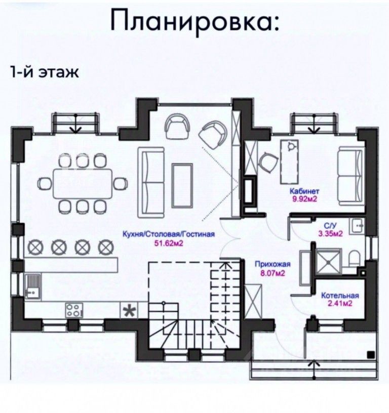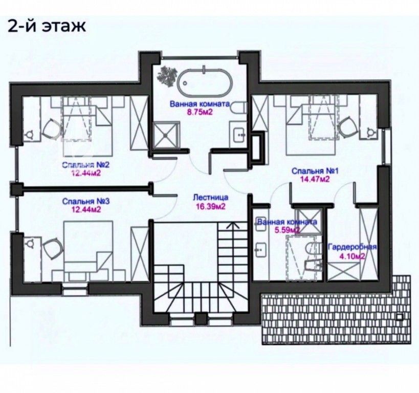 Планировка: Первый этаж: котельная, санузел, спальня, кухня - столовая - гостиная Второй этаж: мастер - спальня со своим санузлом и душевой и гардеробной, две спальни, санузел с ванной и душевой