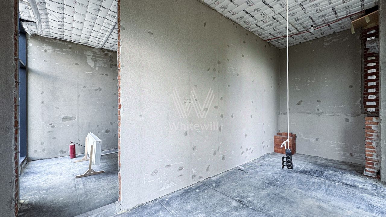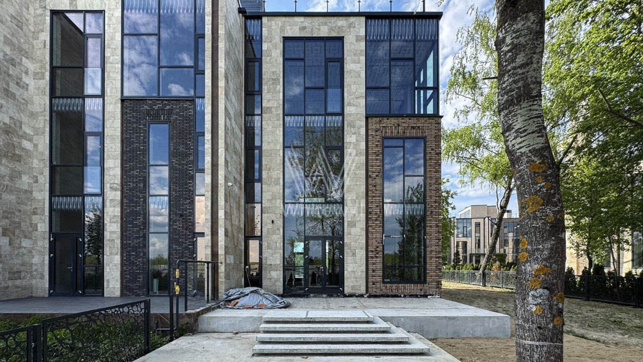 ID 13 746. Park Fonte. Новый загородный таунхаус площадью 275 м² расположен на полевом участке 3,4 сотки. Современный фасад, выполненный в теплых бежево-коричневых тонах, облицован плиткой с фактурой камня и благородным клинкерным кирпичом. Панорамные окна и высокие потолки придают интерьерам объем и легкость. Отсутствие отделки позволяет будущим владельцам воплотить любые дизайнерские идеи или же воспользоваться готовым проектом.