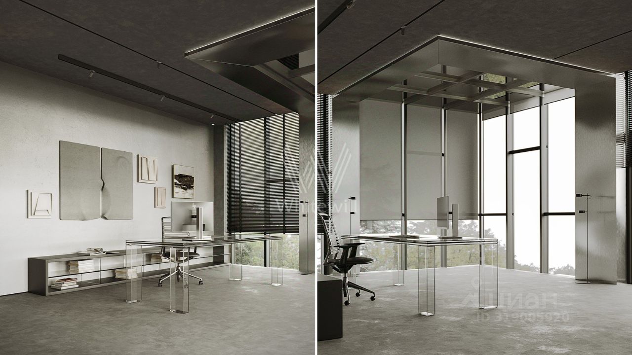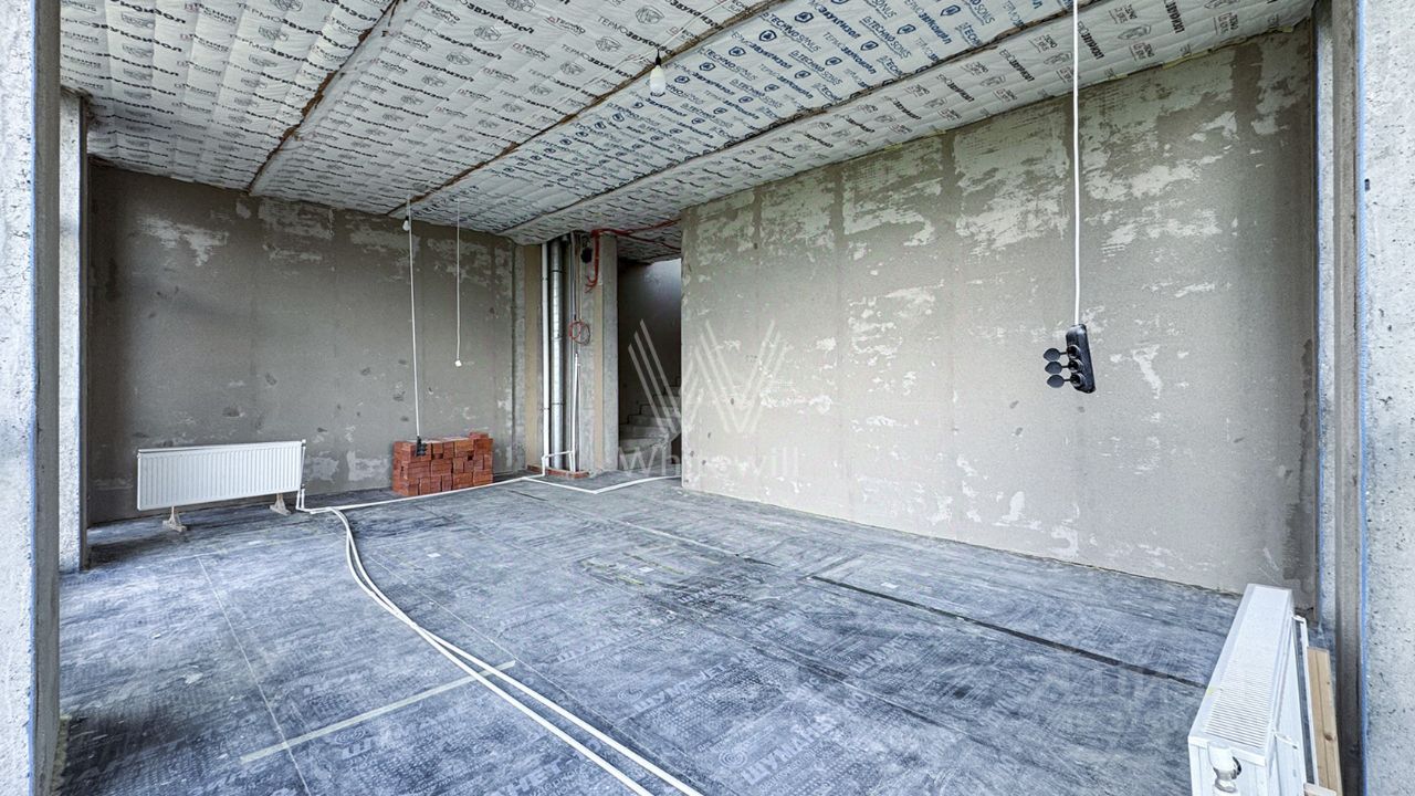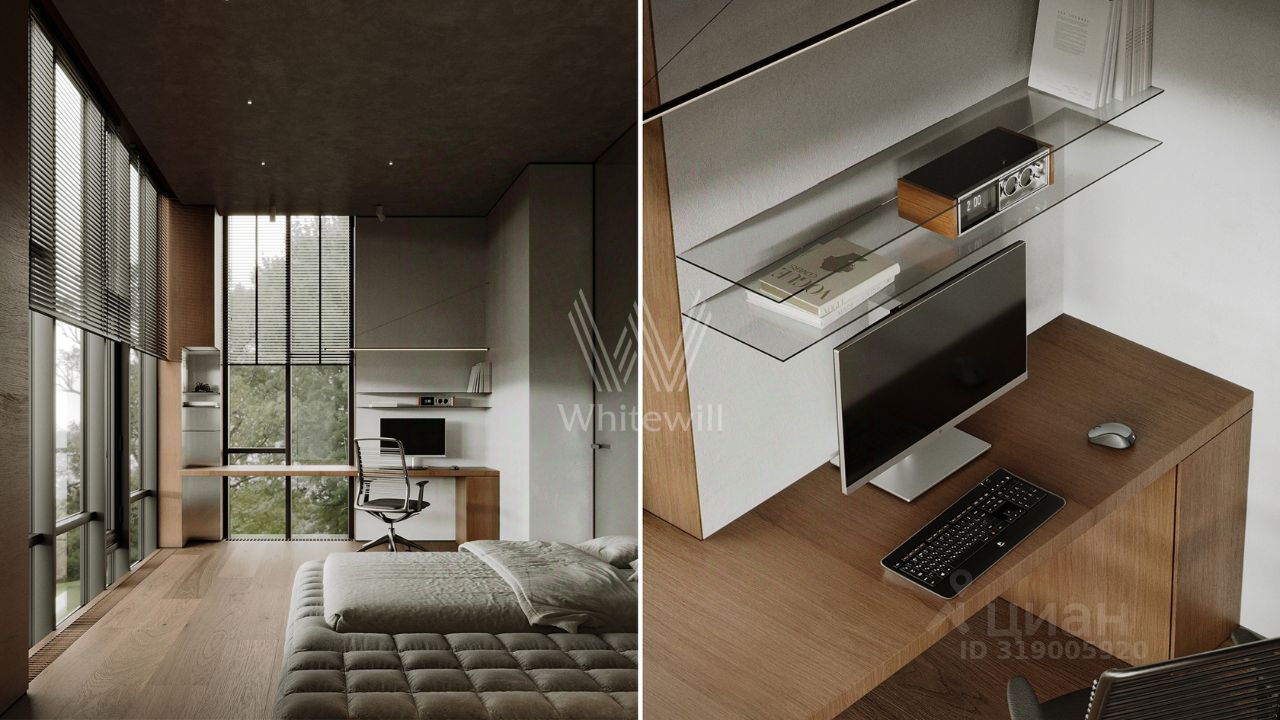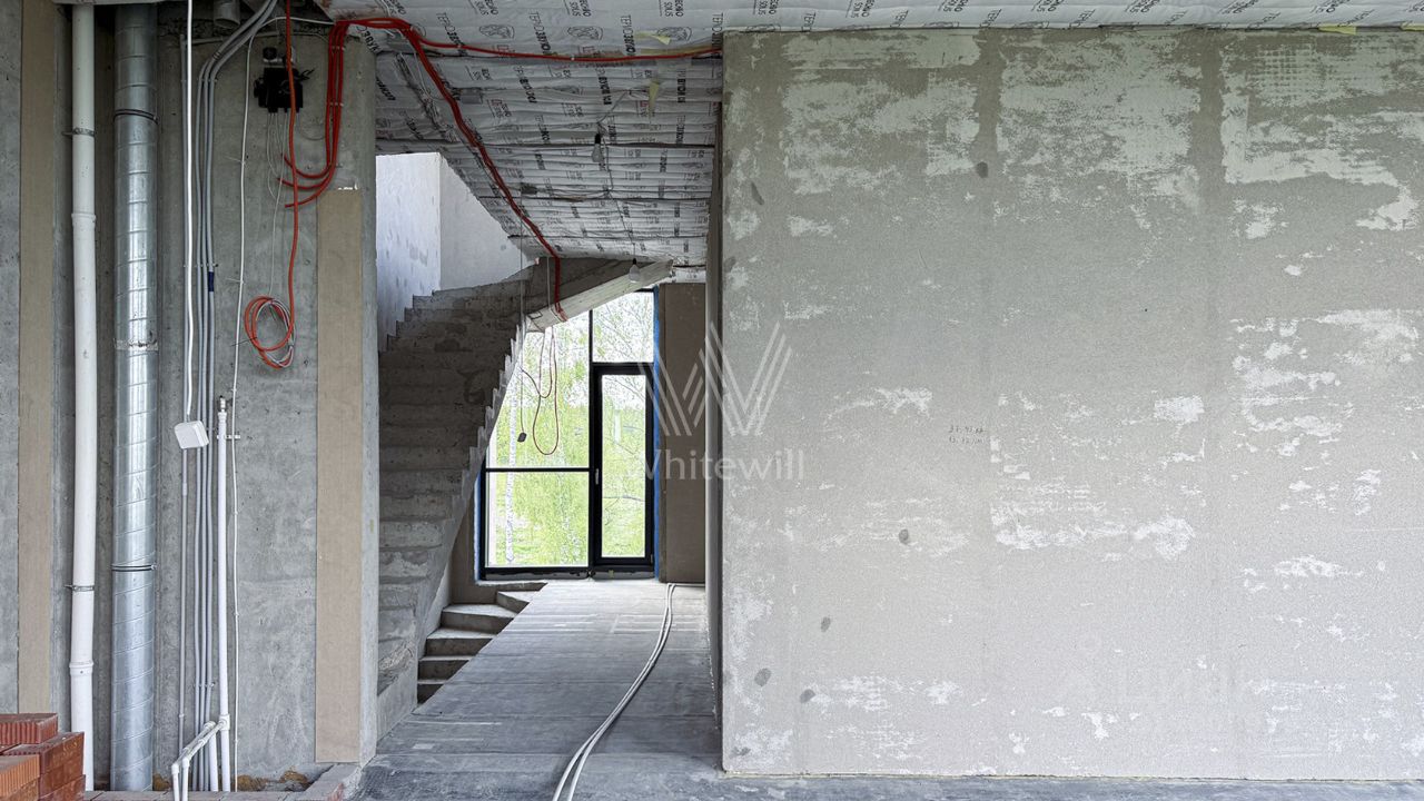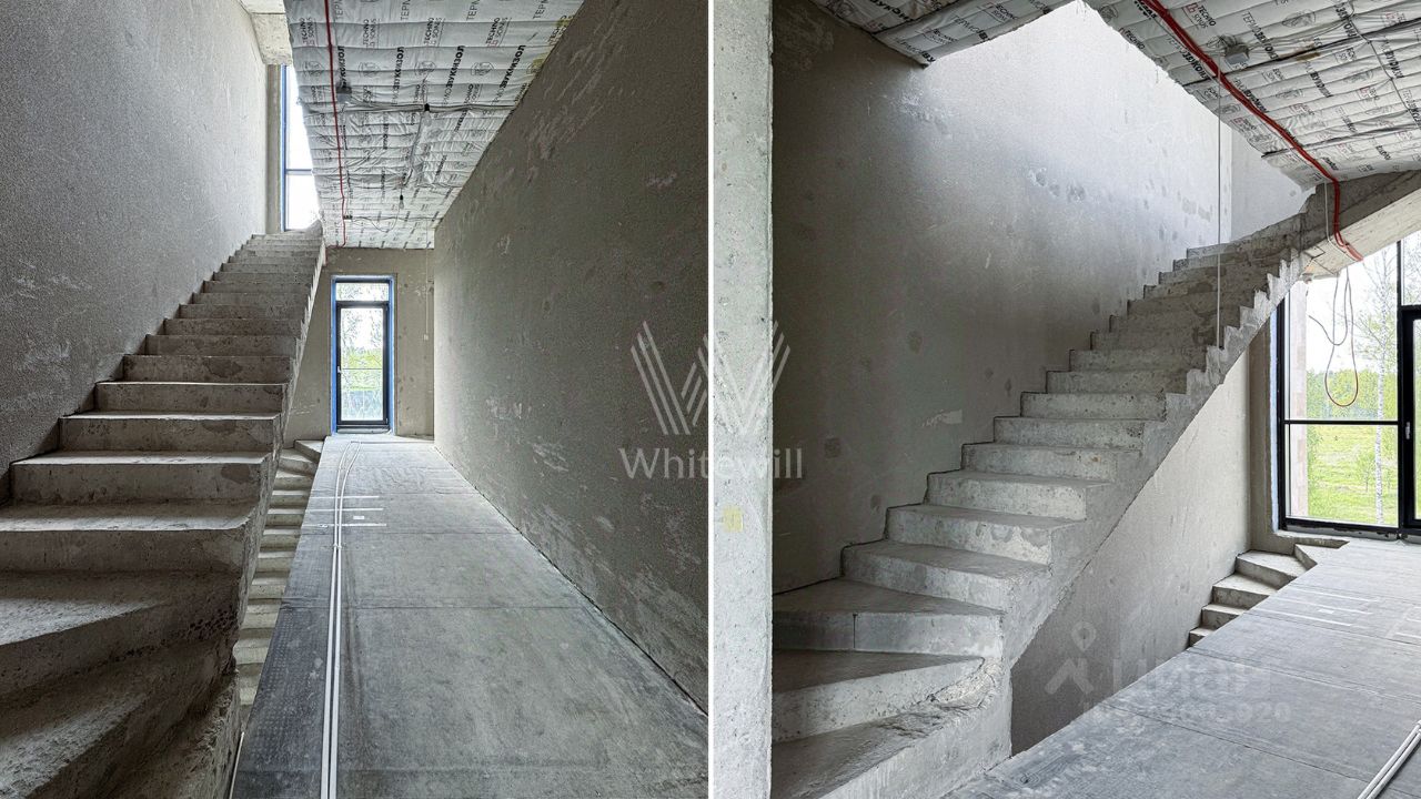 Планировка включает просторную гостиную-кухню-столовую с камином, кабинет, 3 спальни, мастерскую и вместительные гардеробные. Эксплуатируемая кровля и терраса идеально подходят для организации уютных мест для отдыха и барбекю на свежем воздухе. Участок готов к благоустройству — здесь можно засеять газон, высадить декоративные кустарники и установить уличное освещение.