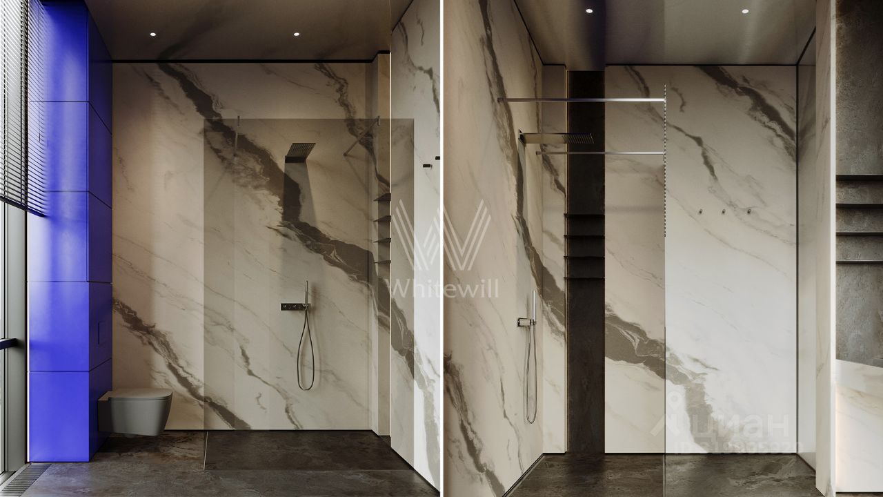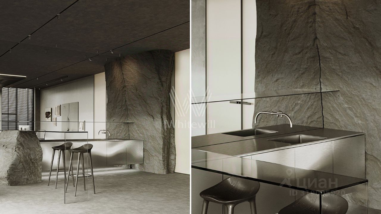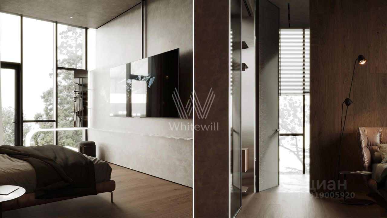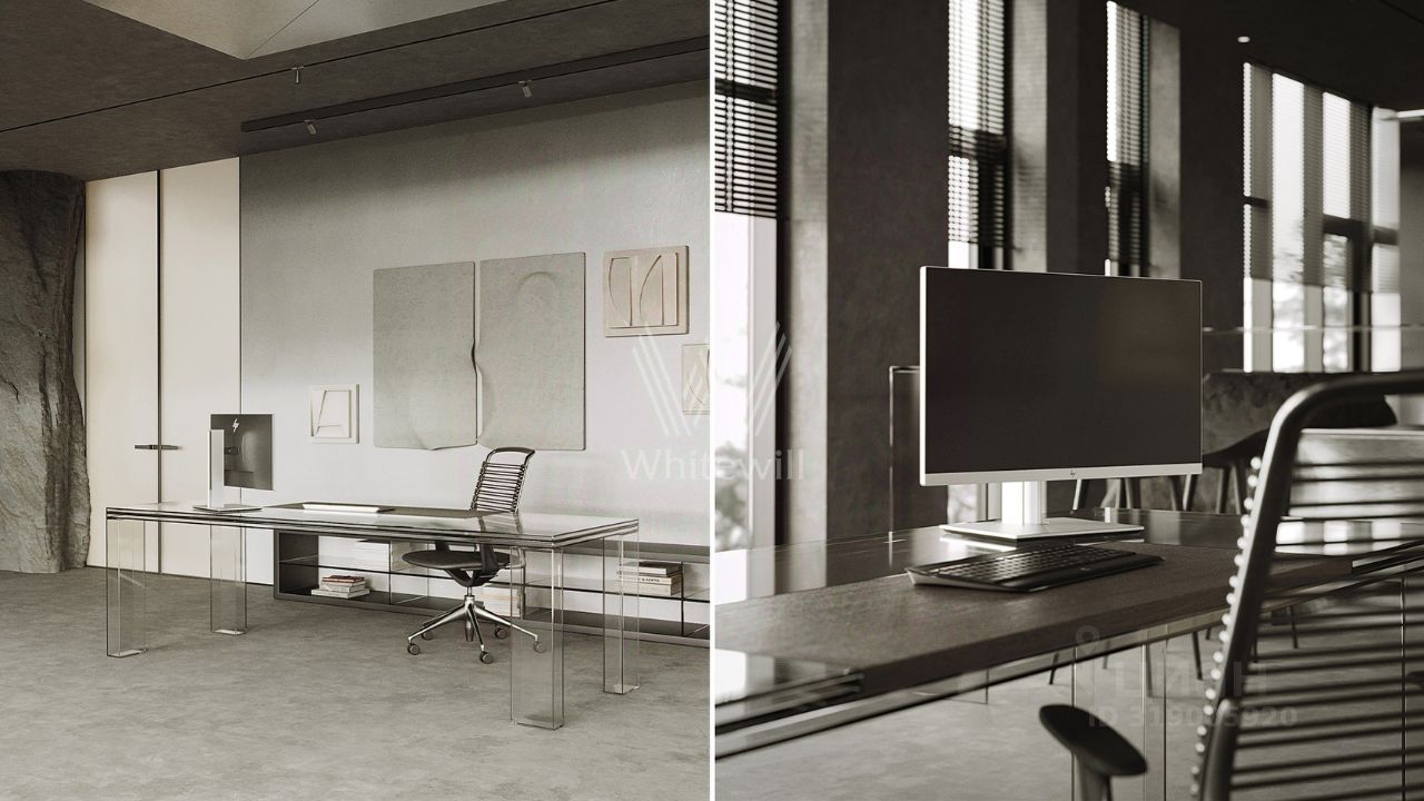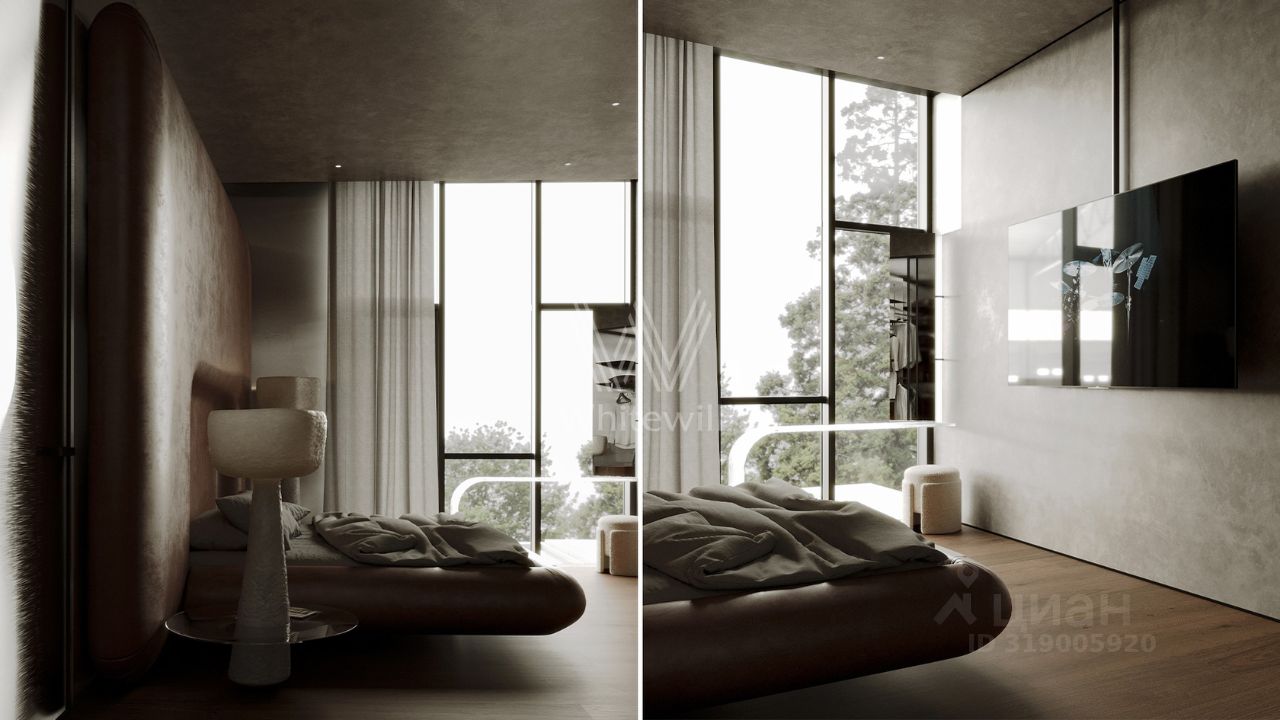Планировка включает просторную гостиную-кухню-столовую с камином, кабинет, 3 спальни, мастерскую и вместительные гардеробные. Эксплуатируемая кровля и терраса идеально подходят для организации уютных мест для отдыха и барбекю на свежем воздухе. Участок готов к благоустройству — здесь можно засеять газон, высадить декоративные кустарники и установить уличное освещение.