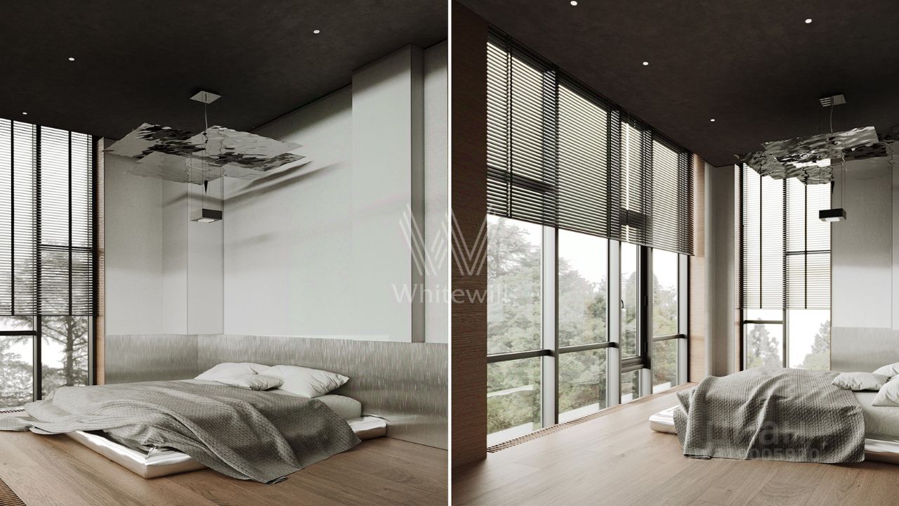Планировка включает просторную гостиную-кухню-столовую с камином, кабинет, 3 спальни, мастерскую и вместительные гардеробные. Эксплуатируемая кровля и терраса идеально подходят для организации уютных мест для отдыха и барбекю на свежем воздухе.
