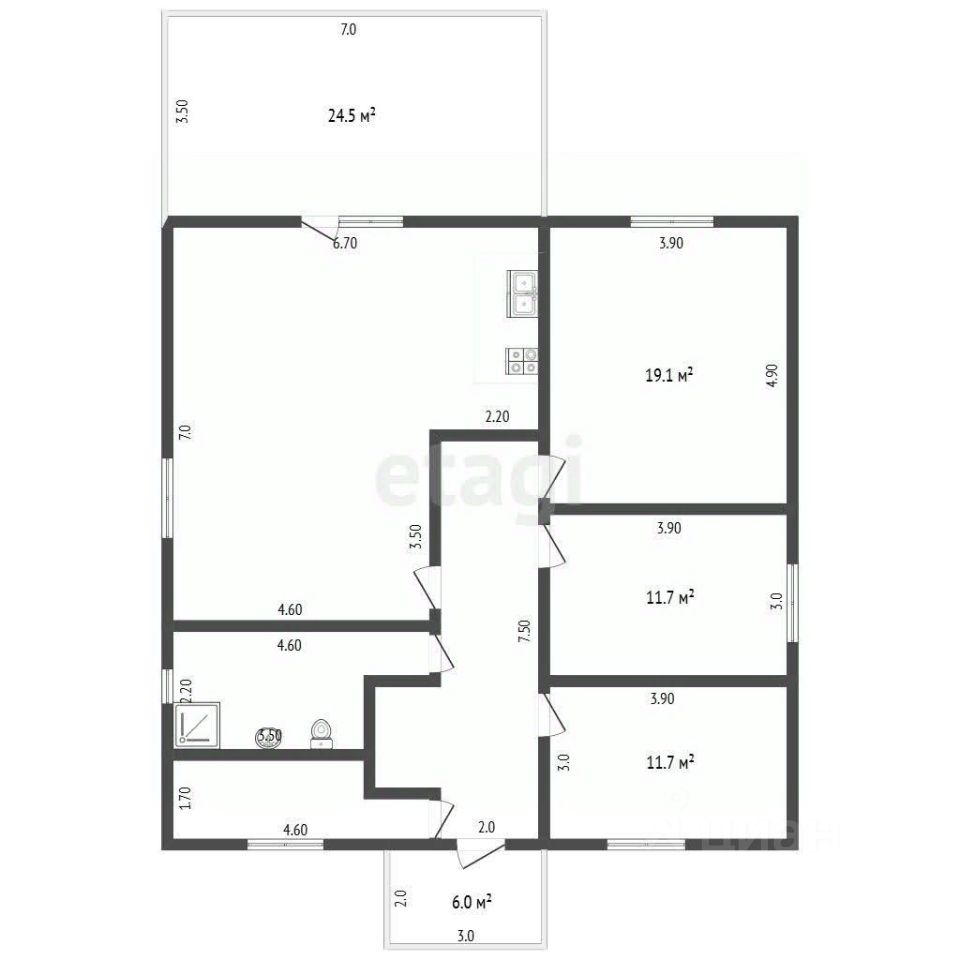 В доме расположены: просторная прихожая, современный санузел с душевой кабиной, 3 изолированные спальни, а также кухня-столовая-гостиная с выходом на веранду, бойлерная. Есть место под крышей— это просторное помещение, которое можно использовать как место для хранения.