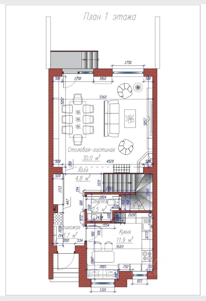 Особенности дома: 2 этажа общей площадью 115 м².