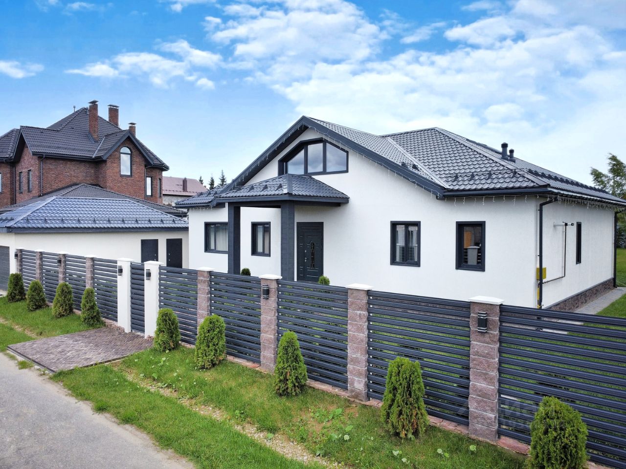 Дополнительные плюсы: - Высота потолков: 3 м (1 этаж) и 2,7 м (2 этаж). - Электричество 15 кВт. - Лестница на второй этаж из ясеня с ковкой. - Ландшафт: ровный участок с газоном, дренаж и ливневка, дорожки вымощены камнем. - Готовое освещение по периметру.