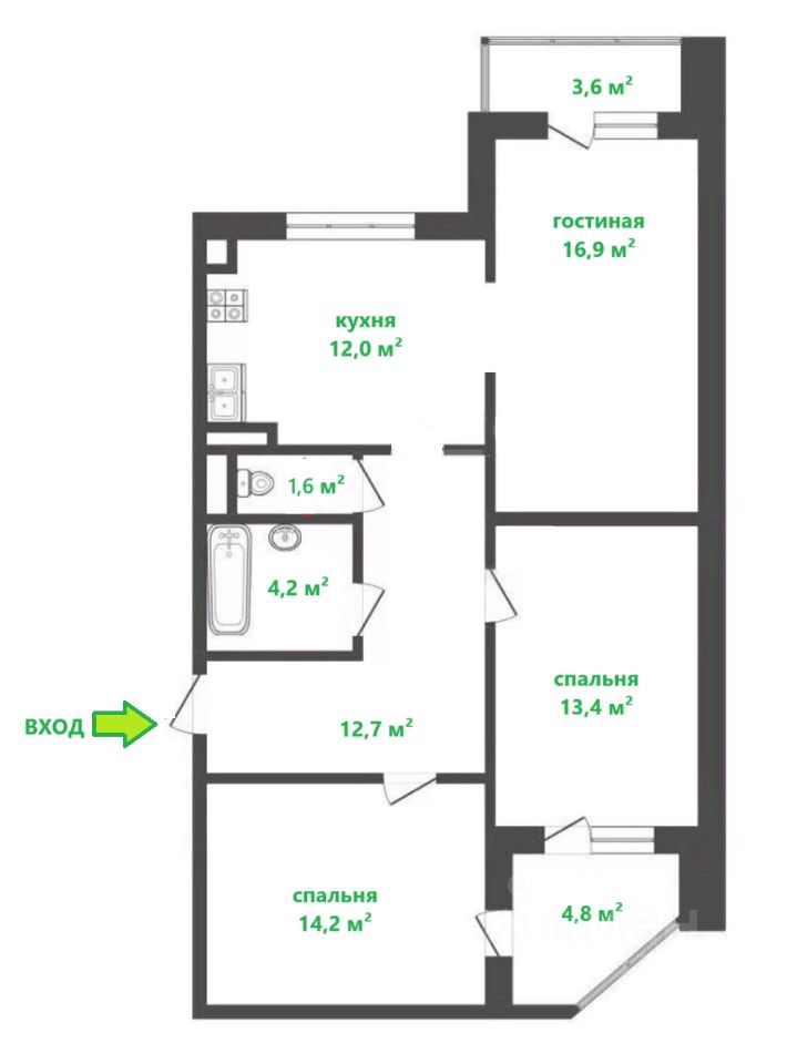 Продается уютная просторная 3-комнатная квартира в ЖК Нахабино Ясное (застройщик ЛСР). Общая площадь квартиры - 78,4 кв. м, площадь без лоджий (ЕГРН) - 74,7 кв.м., гостиная - 16,9 кв. м, кухня - 12,0 кв. м, две спальни - 13,4 и 14,2 кв.м., две лоджии 3,6 и 4,8 кв.м. (застеклены), раздельный санузел, просторный коридор. В квартире выполнен качественный ремонт в современном стиле. Квартира меблирована и готова к проживанию без дополнительных вложений. В каждой квартире ЖК установлен индивидуальный прибор отопления (газовый котел), с помощью которого осуществляется подогрев воды для бытовых нужд, а так же для отопления квартиры (отопительный сезон начинаете и заканчиваете по своему выбору). Чистый ухоженный подъезд. Во дворе достаточно мест для парковки. Есть детская и спортивная площадки. ЖК Нахабино Ясное расположен в деревне Черная Истринского района МО. Это малоэтажный жилой комплекс из 41 дома. Добраться до ЖК из Москвы можно за 20 минут: по Волоколамскому шоссе -- 17 км, по Новорижскому 23 км. В трех километрах от ЖК находится ж/д станция Малиновка (Рижское направление). Радом с ЖК есть автобусная остановка до метро Тушинская, Волоколамская и Нахабино. Развитая ифрастукрура рядом с домом: детский сад, школа, гимназия, магазины, пункты выдачи, аптеки, рынок, медицинский центр, спортивный клуб, салоны красоты, кафе. Для прогулок есть благоустроенные парки и скверы с водоемами, пляжами, детскими площадками, пешеходными и велосипедными дорожками. 2 взрослых собственника (супруги), первичные документы, полная стоимость в ДКП, без обременений, мат.кап не использовался. Звоните и записывайтесь на просмотр! Мы будем рады ответить на вопросы по телефону и показать квартиру в удобное для вас время.
